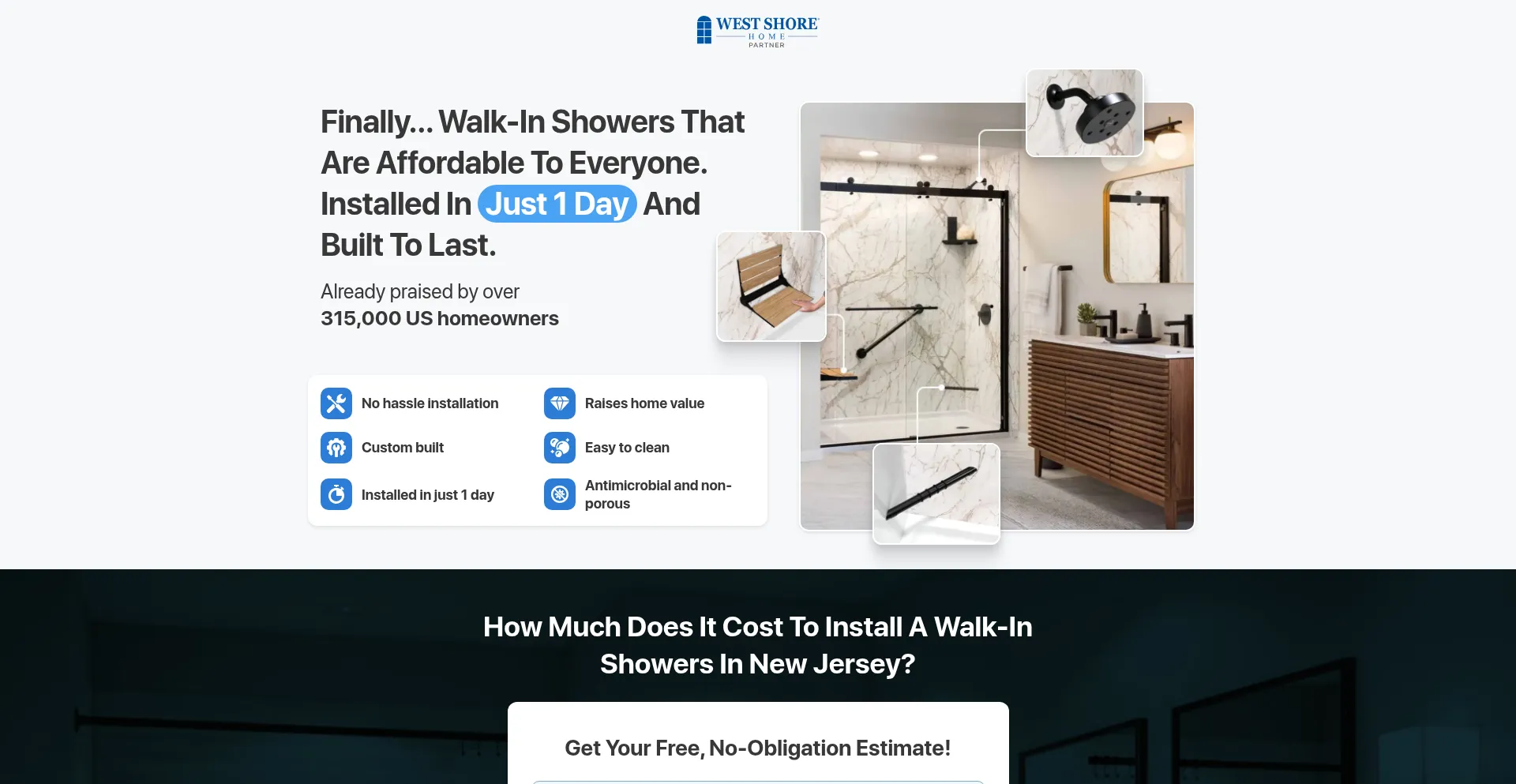 该网站实现数据收集表单,请求个人信息,包括姓名、电子邮件地址、电话号码或其他敏感详细信息。用户应验证 westshorehomebaths.com 的合法性并在提交个人数据前查看隐私政策。