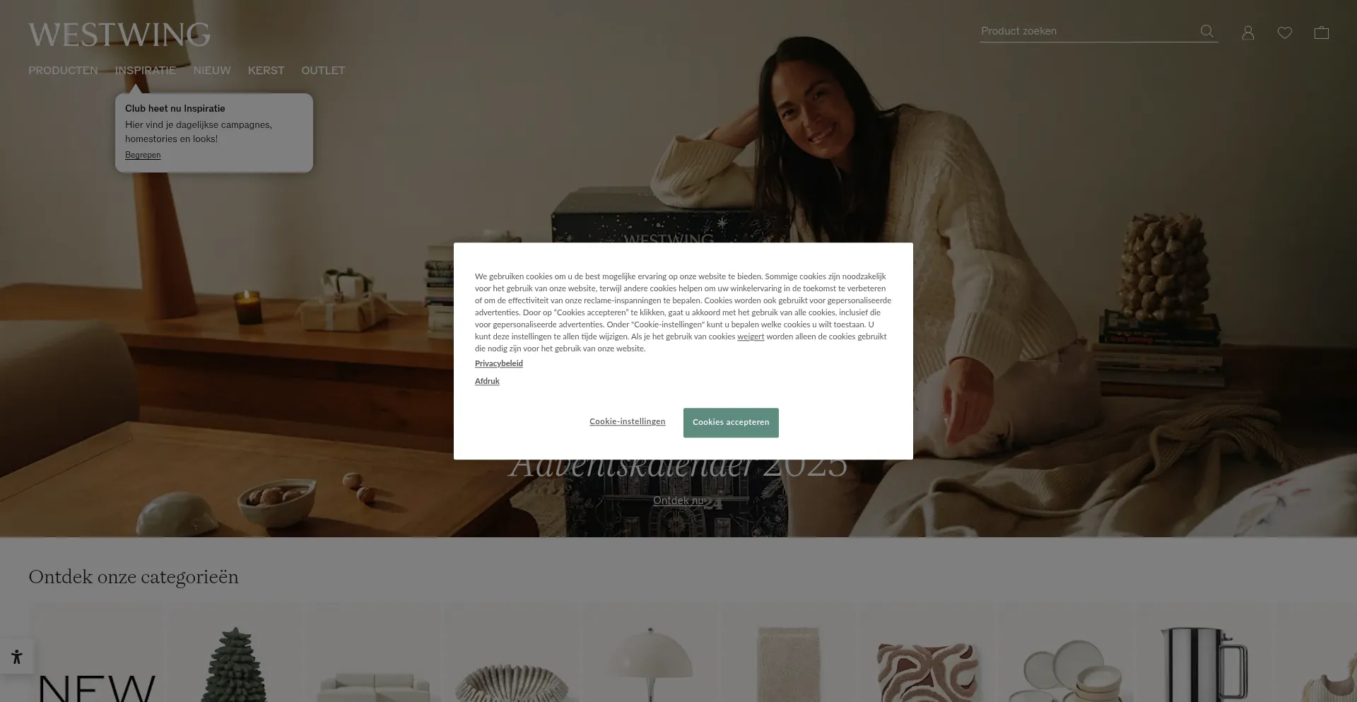 该网站实现符合GDPR或CCPA等隐私法规的cookie同意机制。这表明 westwing.nl 遵守数据保护标准并为用户提供对个人数据收集实践的控制。