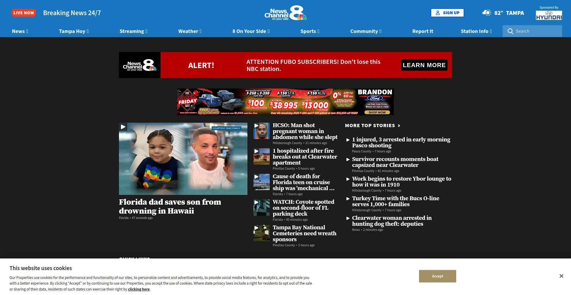 Get your local news from News Channel 8, On Your Side for Tampa Bay, St. Petersburg and central Florida