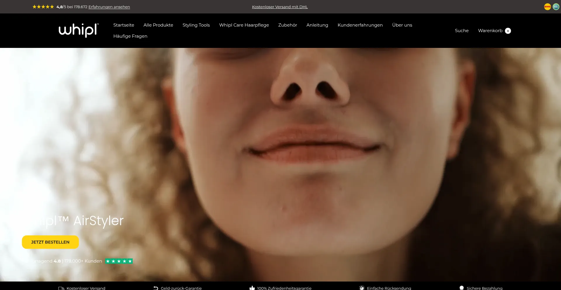 Erlebe den Whipl Airstyler – Dein vielseitiger Haarstyler für müheloses Föhnen, Glätten, Locken und Volumen. Ideal für alle Haartypen. Perfekte Frisuren in kürzester Zei...