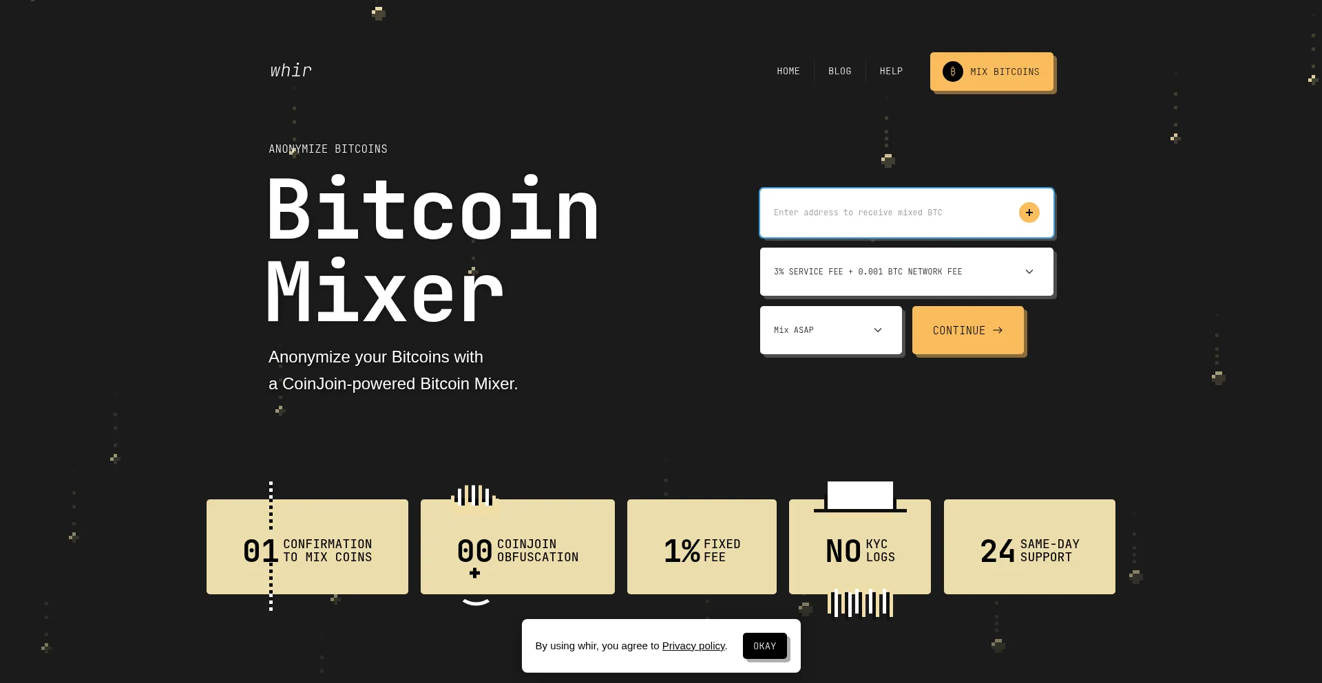Whir is a Bitcoin mixer that returns privacy to your Bitcoin.
