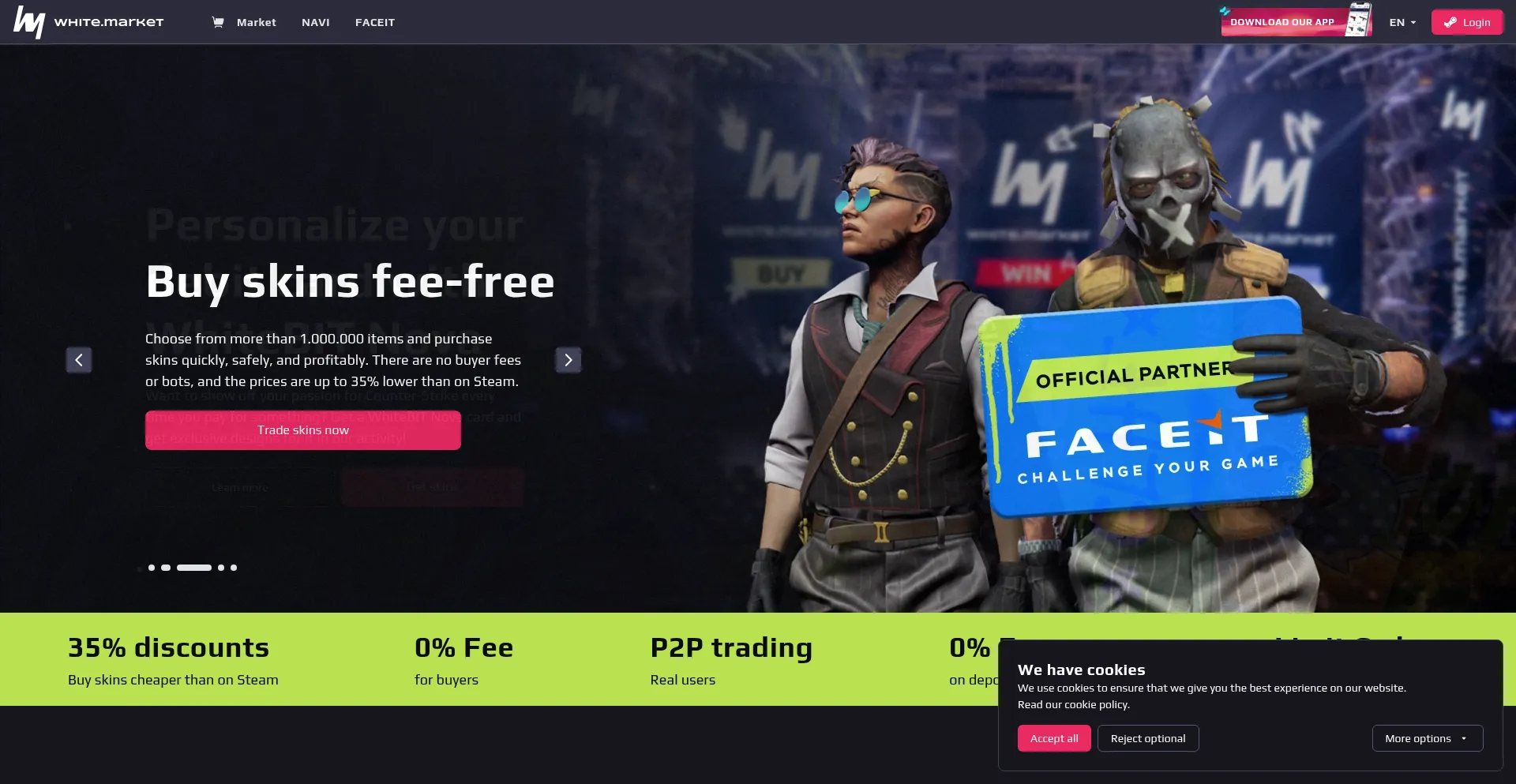 white.market is a P2P platform where you can sell and buy CS2 (CS:GO) skins, items, and more. Sell and buy CS2 (CS:GO) skins, withdraw funds in crypto and real money. Secure ✓...