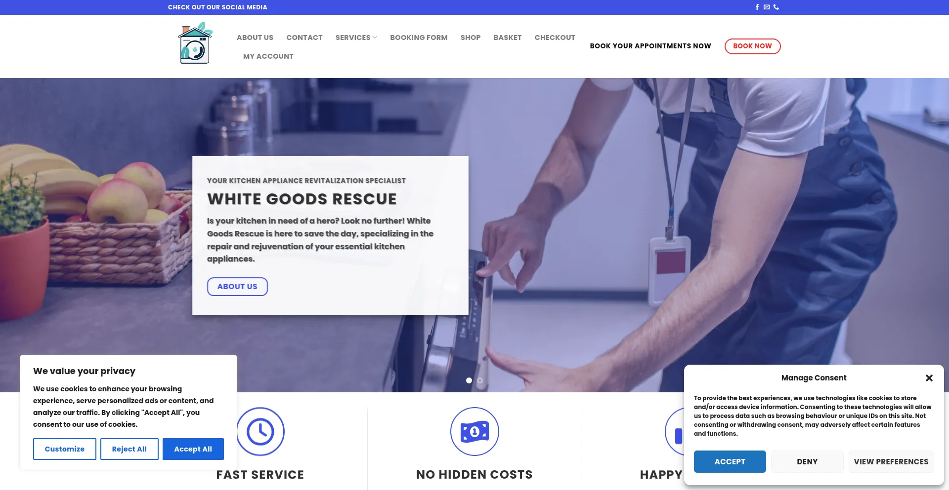 该网站实现符合GDPR或CCPA等隐私法规的cookie同意机制。这表明 whitegoodsrescue.co.uk 遵守数据保护标准并为用户提供对个人数据收集实践的控制。