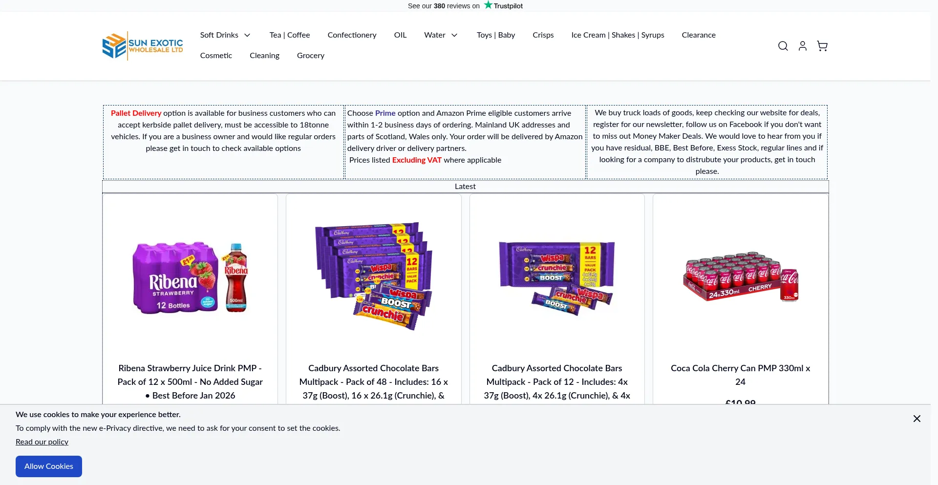 Wholesale‑Supplier UK: soft drinks, confectionery & household goods. Clearance, surplus & short‑dated stock at trade prices with delivery or collection