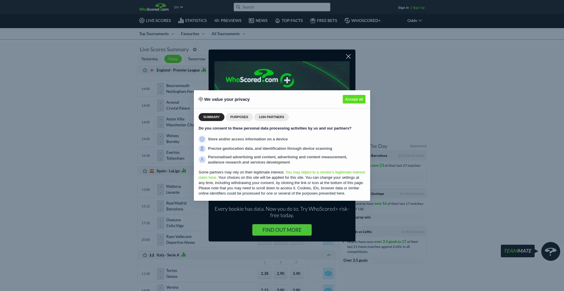 WhoScored brings you live scores, match results and player ratings from the top football leagues and competitions.