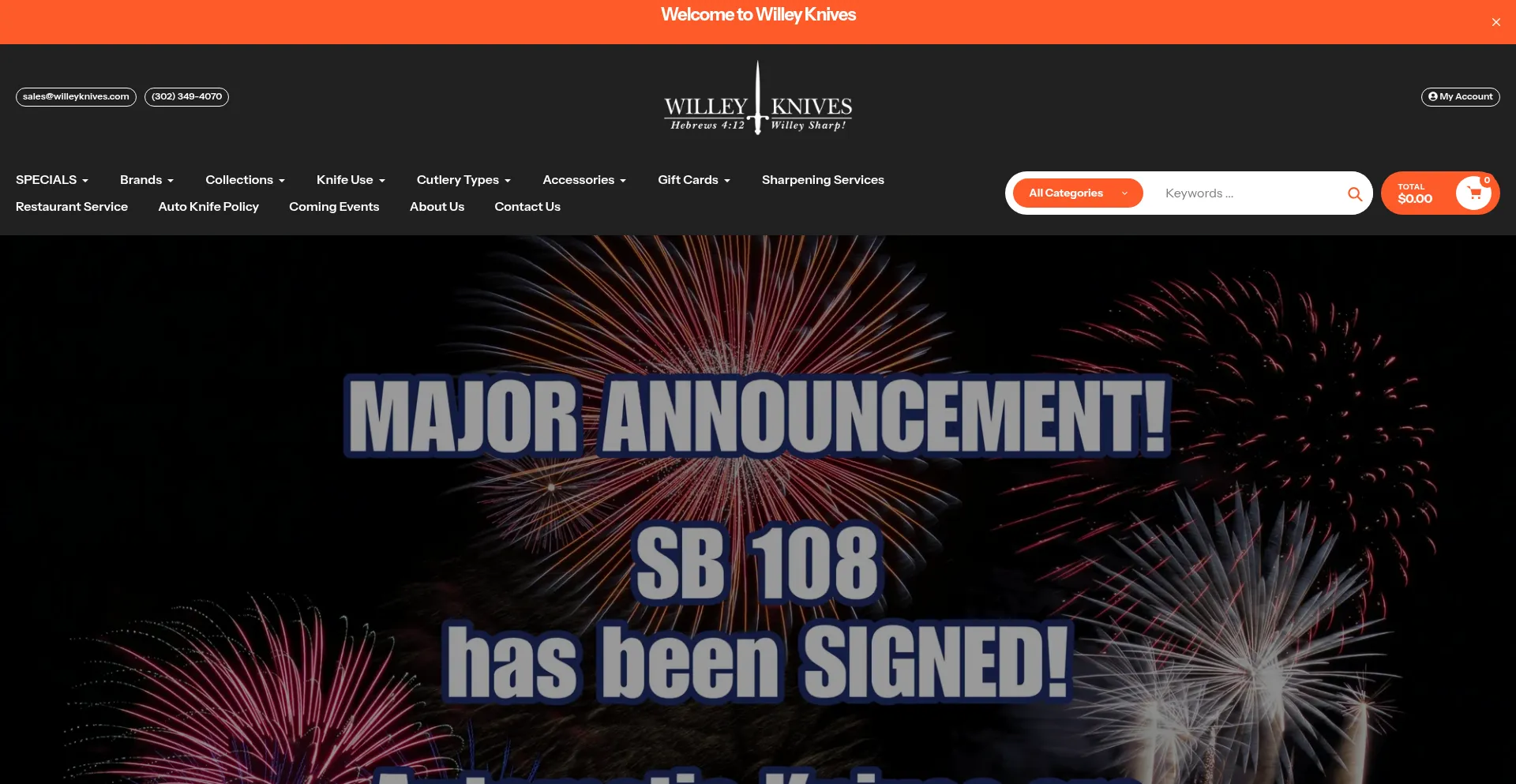 网站 willeyknives.com 使用免费电子商务平台解决方案,这可能表明成本意识运营,但也可能暗示与企业级解决方案相比在安全功能、客户支持或高级功能方面的限制。