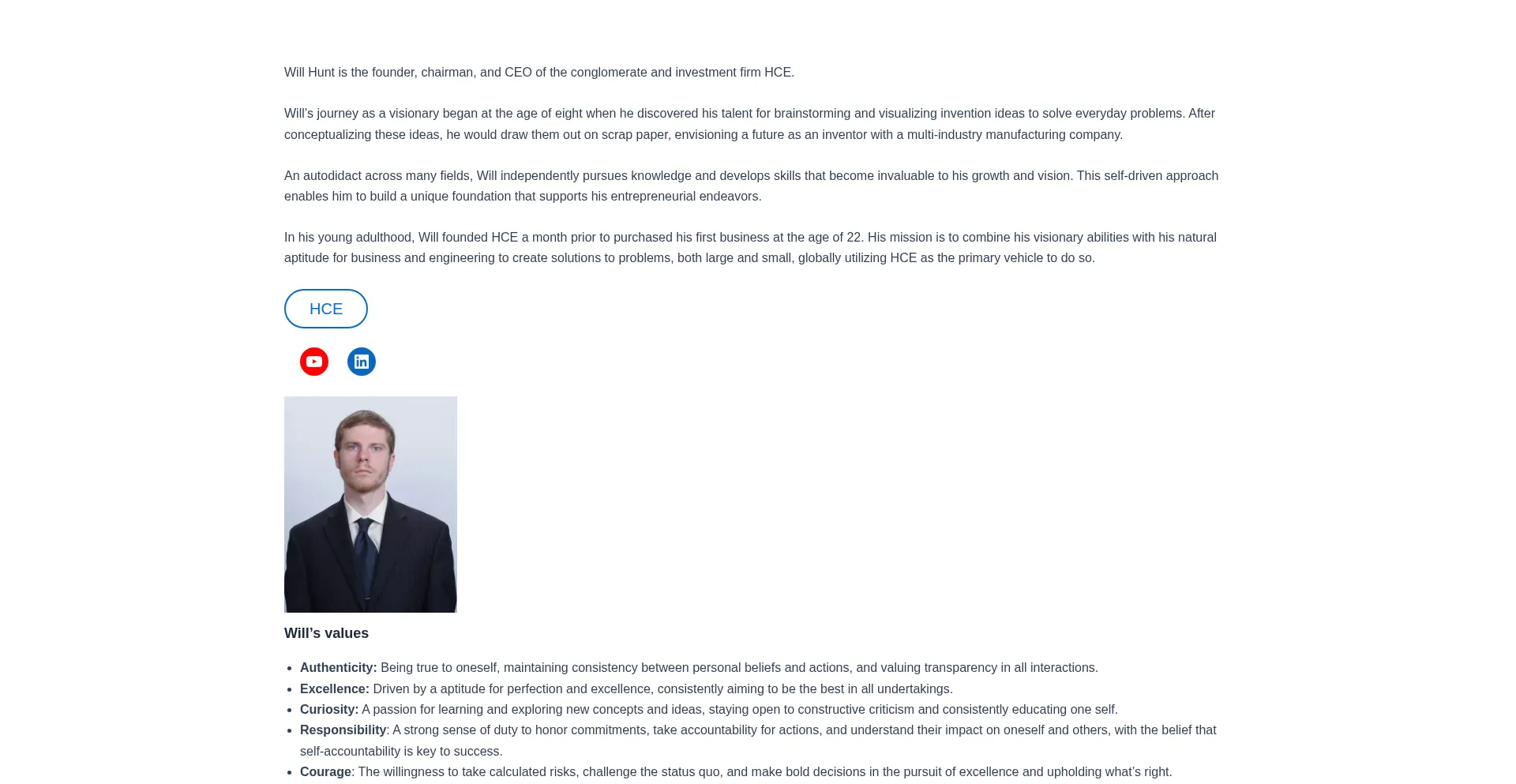 Will Hunt is the founder, chairman, and CEO of the conglomerate and investment firm HCE.