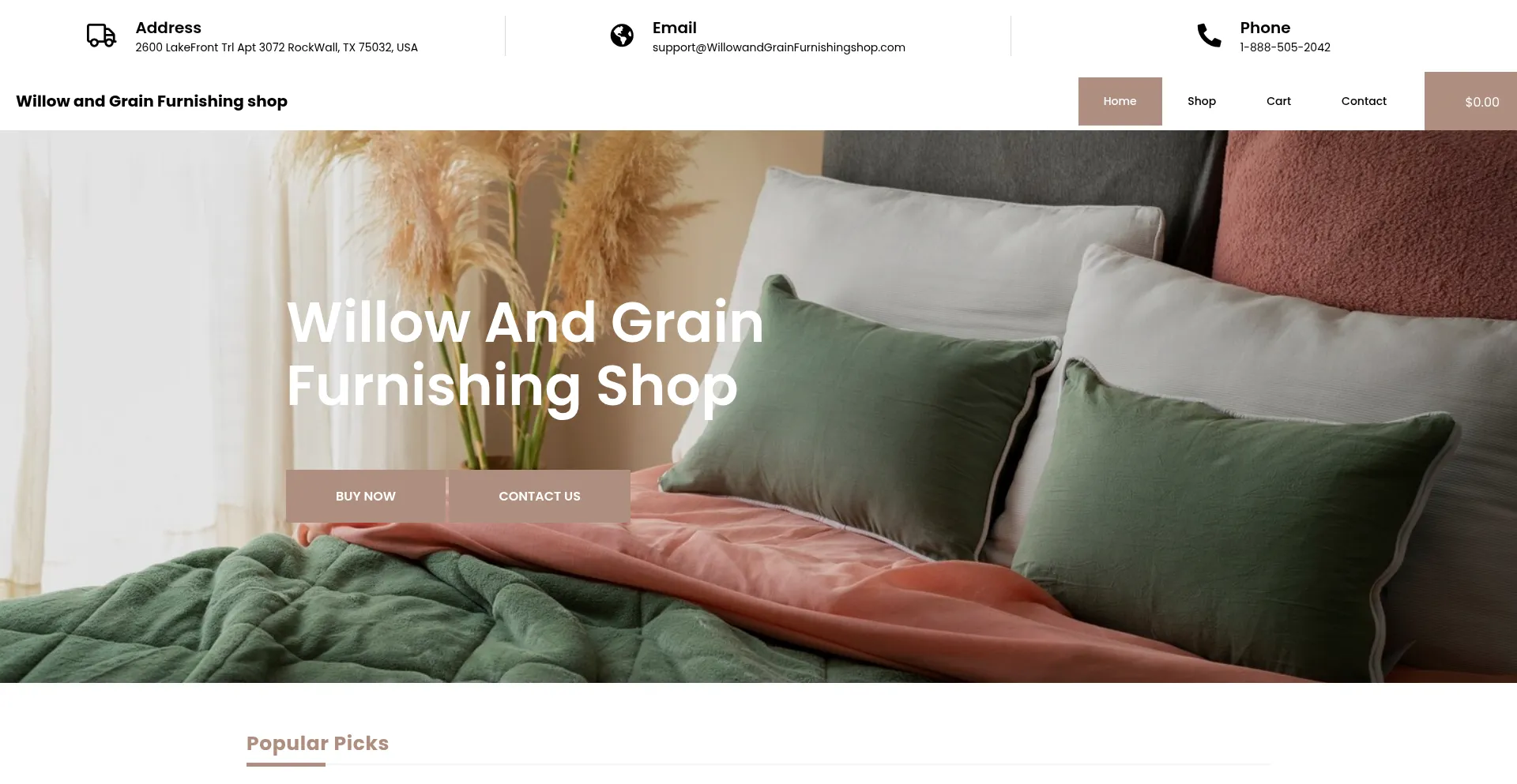 willowandgrainfurnishingshop.com 使用 Bootstrap,这是一个广泛采用的开源响应式网页开发框架。Bootstrap 通过标准化组件和样式实现移动友好界面的高效创建。