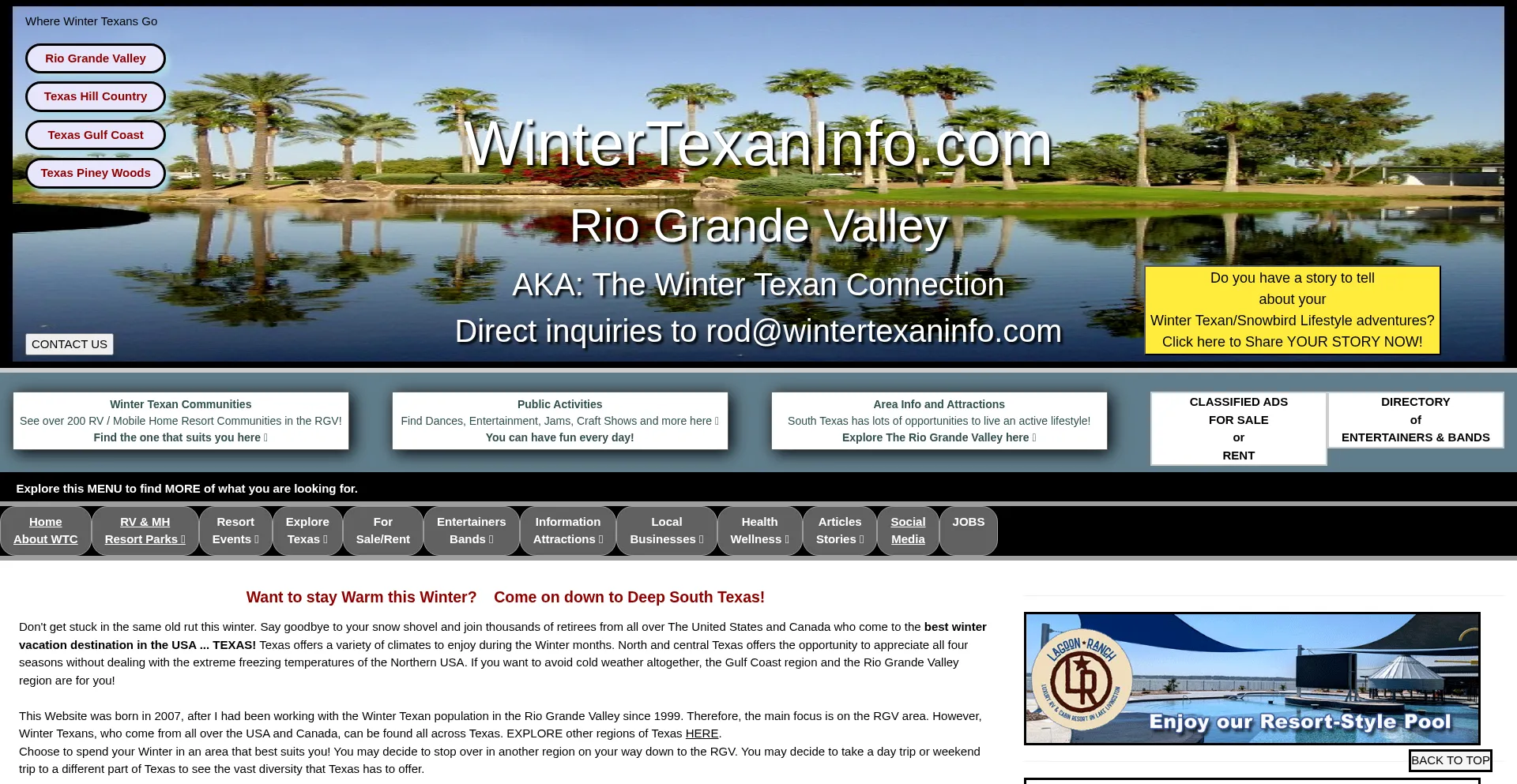 Winter resorts Texas, RV parks RGV information Winter Texan Connection