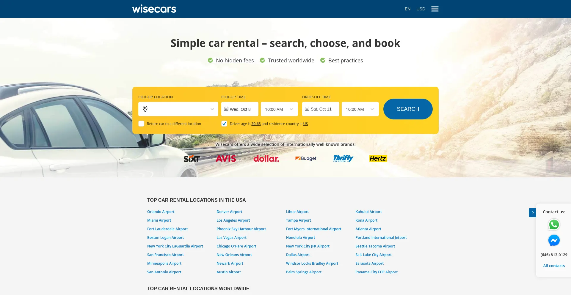 Easy and secure booking. Best car rental deals guaranteed. Well-known brands with all car types. Worldwide distribution. Incomparable prices. No hidden fees.