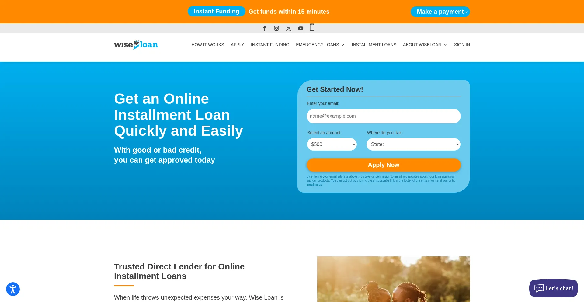 Wise Loan is a leading provider of the best online installment loans for all types of credit. Apply online for an installment loan of up to $1500 today!