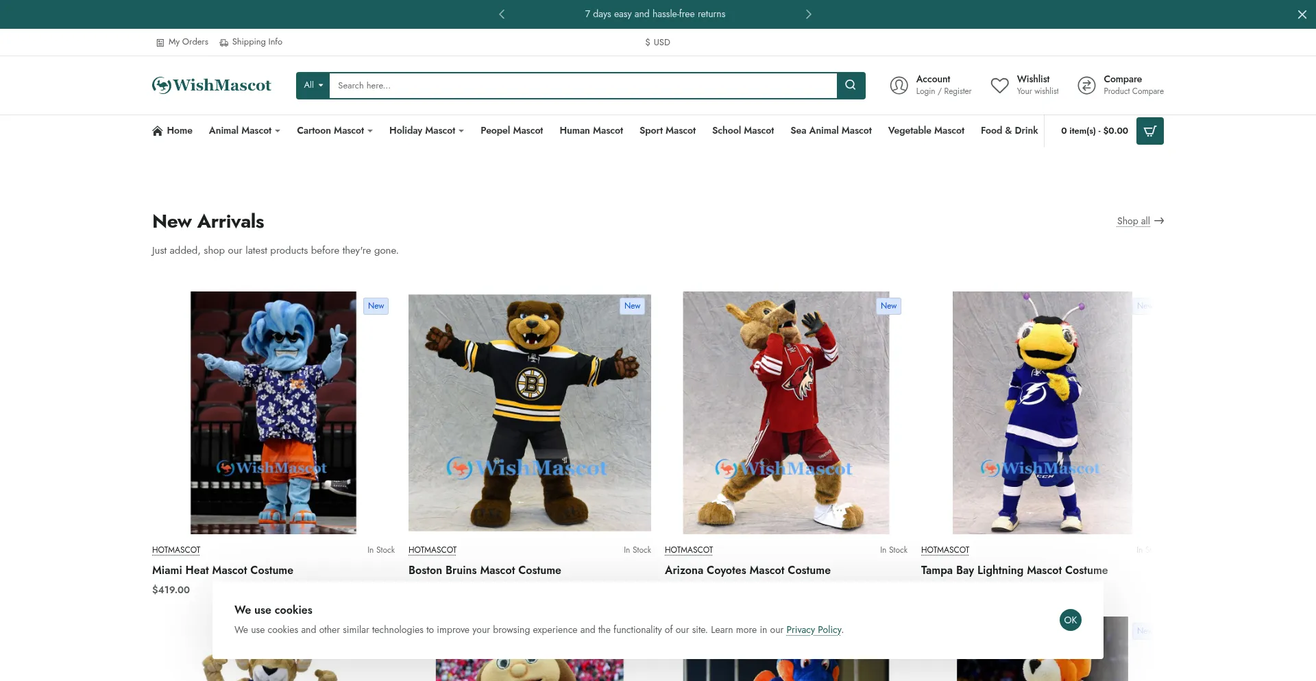 Wishmascot.com is a Professional Mascot Costumes Wholesale Factory, We offer Various Mascot Costumes for School, College, Bussines at Affordable Price and Fast&Global Shipping!