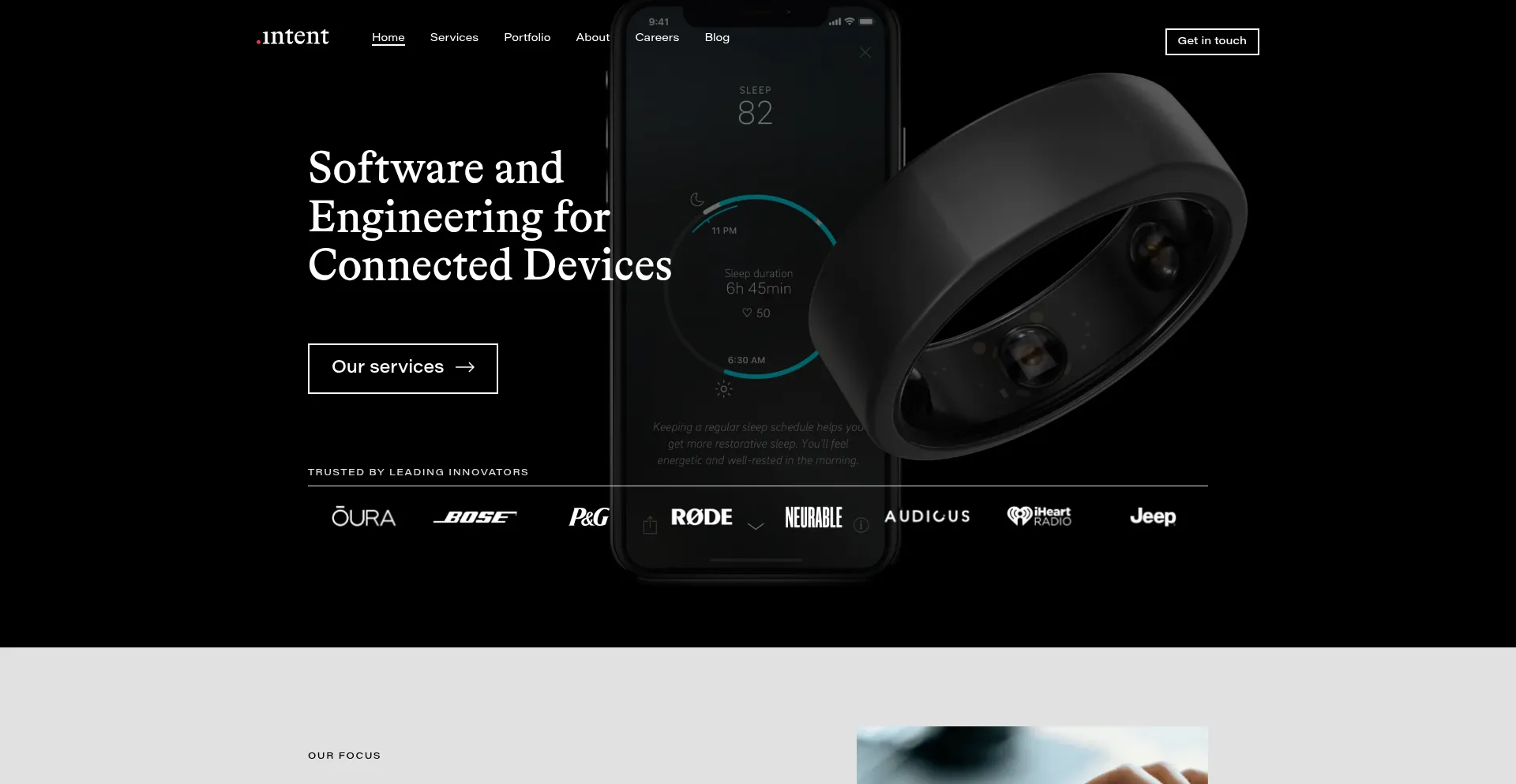 Intent has over 10+ years of experience in helping to conceptualize, design and build apps for connected devices and IoT. Devs behind the success of Oura.