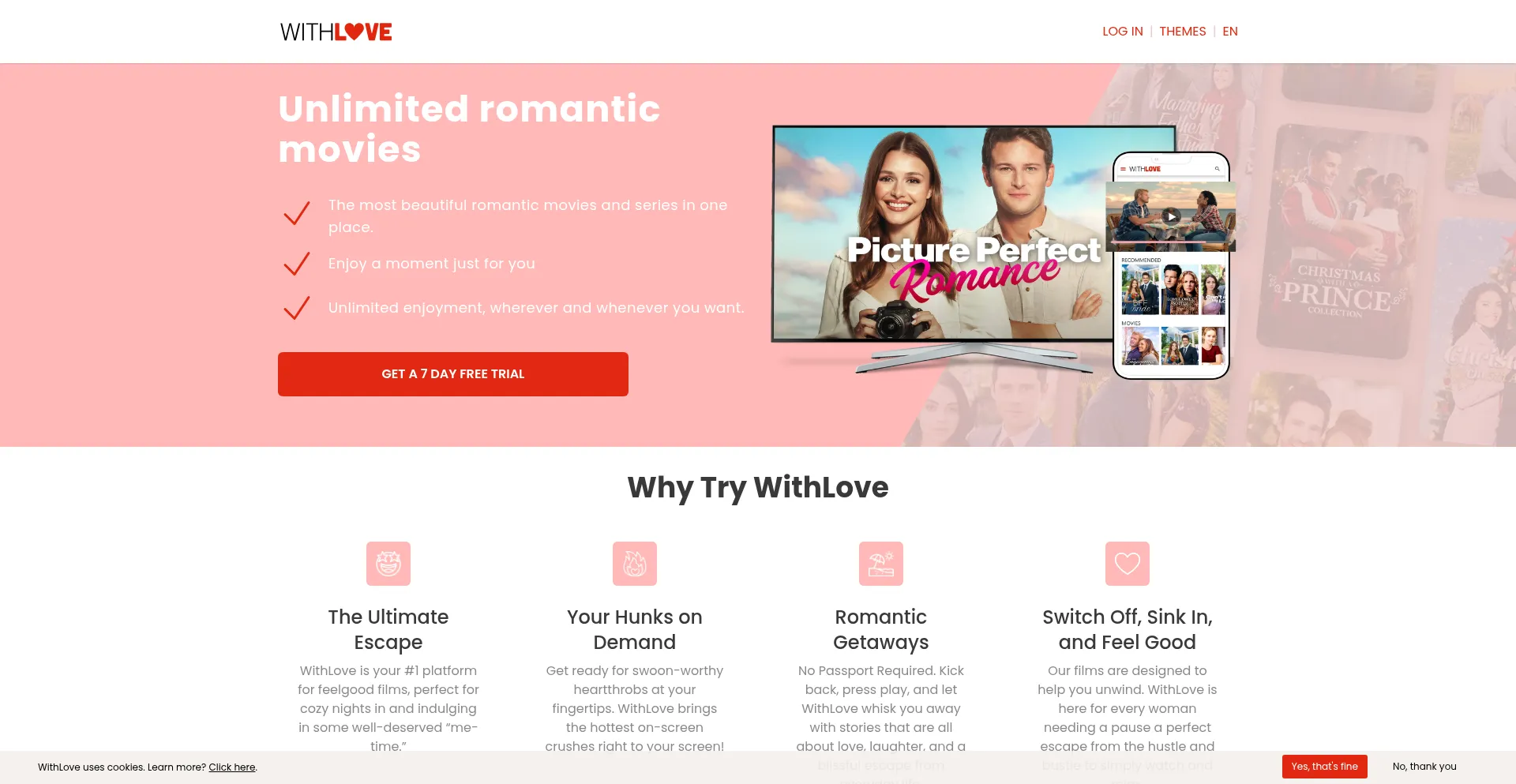 At WithLove you watch the most beautiful romantic films and series, where and when you want, without commercials. Try it now completely free for the first