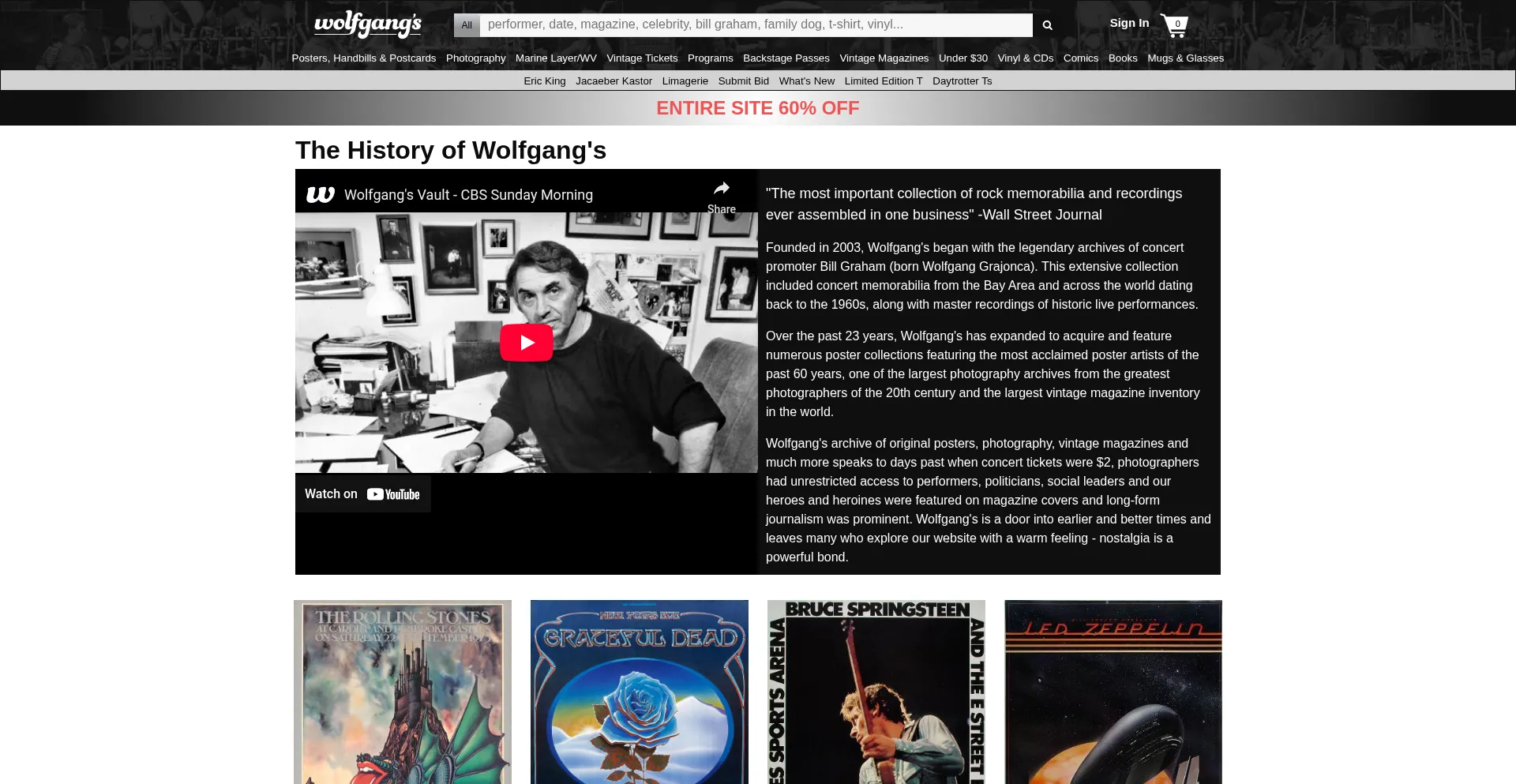 Wolfgang's: Authentic Vintage Concert & Music Posters, Concert Streaming, Concert T-Shirts, Concert Photos