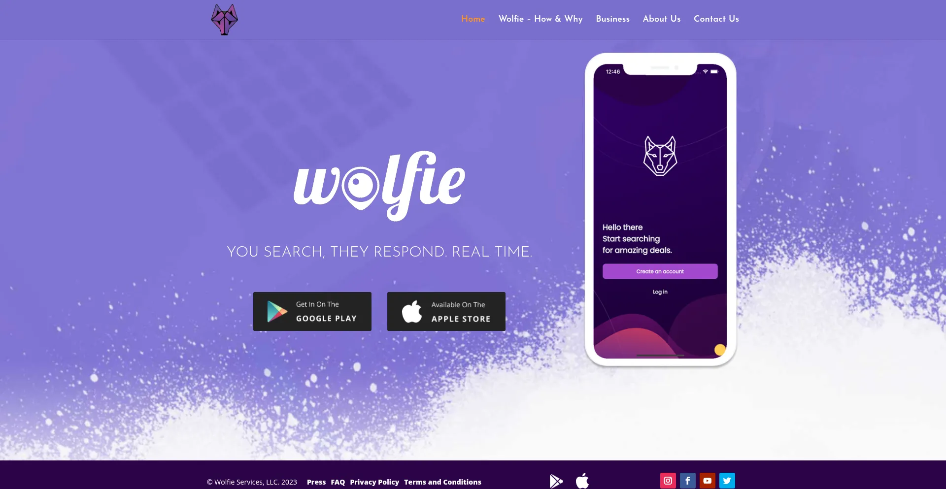 wolfie.com 提供 Android 设备移动应用程序,表明平台存在已扩展到网络服务之外。