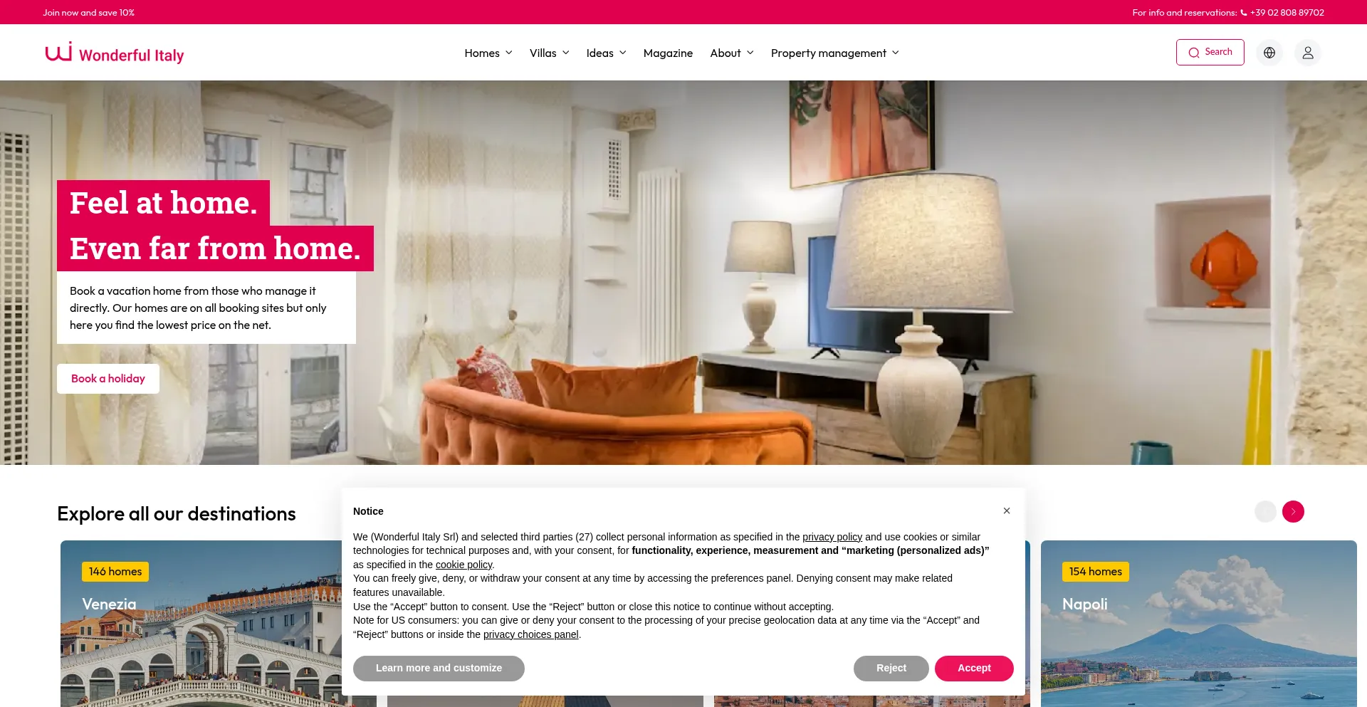 该网站实现数据收集表单,请求个人信息,包括姓名、电子邮件地址、电话号码或其他敏感详细信息。用户应验证 wonderfulitaly.eu 的合法性并在提交个人数据前查看隐私政策。