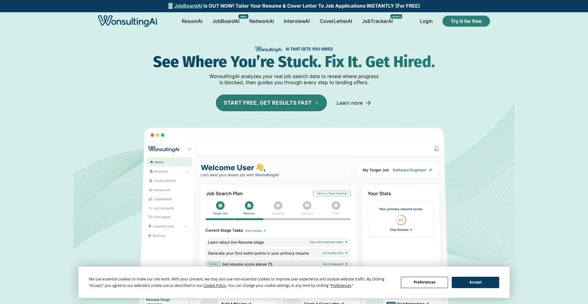 Tired of rejection after rejection? WonsultingAI helps you turn 'no's into offers with AI tools built to give job seekers an edge. From perfecting your resume to nailing intervi...