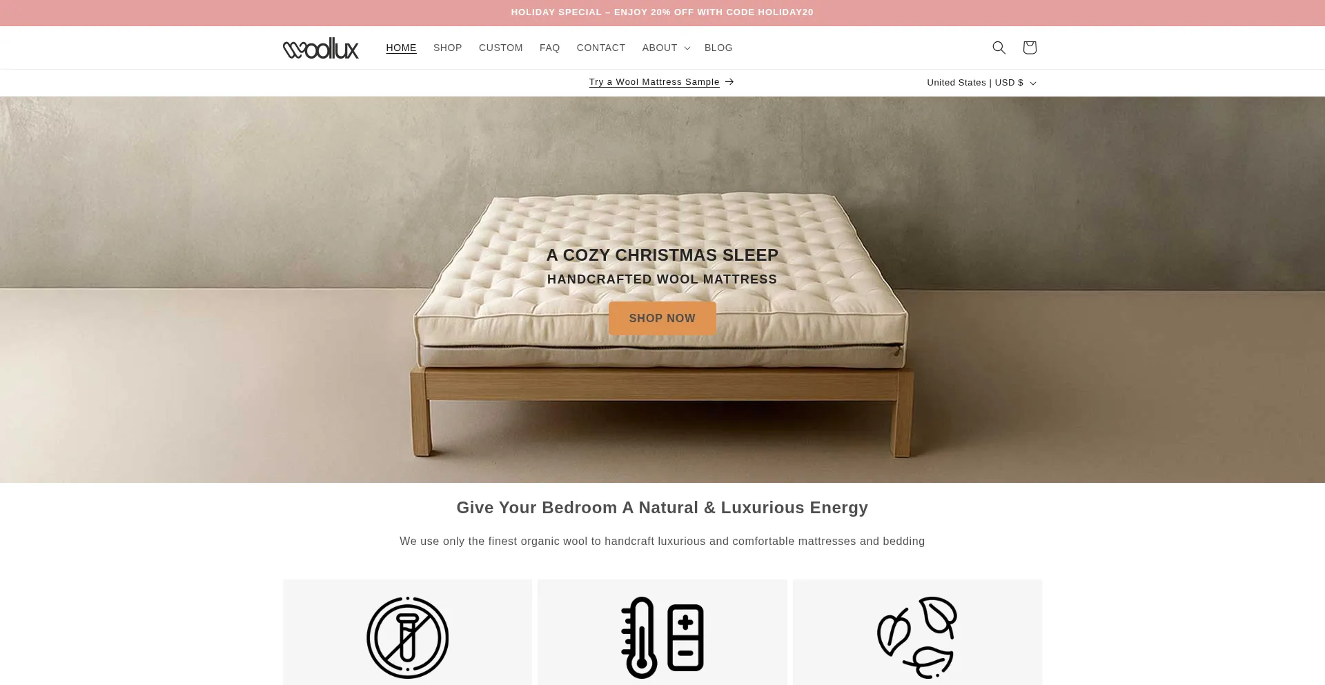 Handcrafted wool bedding made from natural, breathable materials. Experience luxurious comfort, firm support, and healthier, restorative sleep every night.