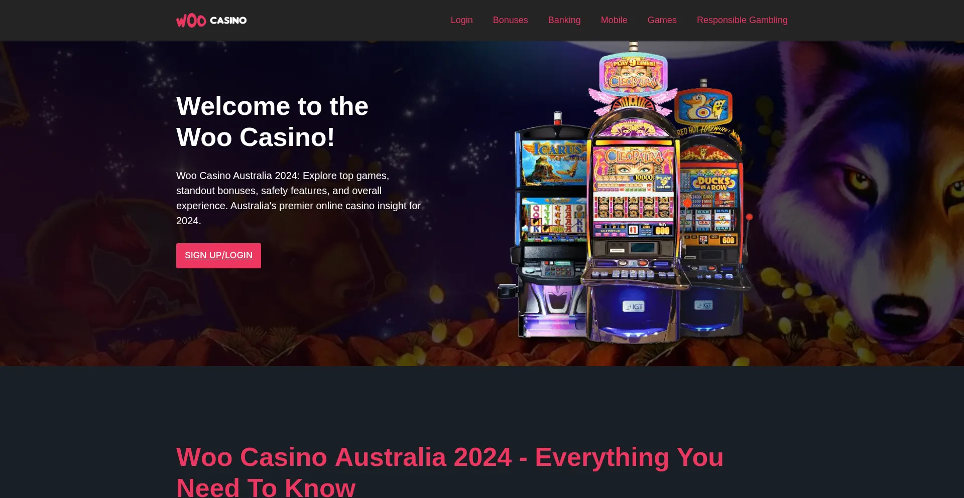 Woo Casino Australia 2024: Comprehensive guide on games, bonuses, security, and user experience. Your ultimate resource for informed online gaming in Australia.