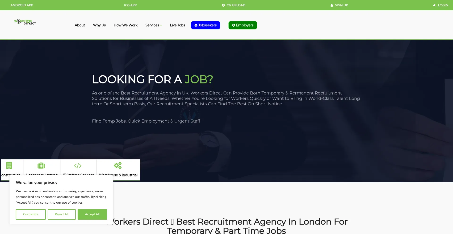 workers-direct.com 提供 Android 设备移动应用程序,表明平台存在已扩展到网络服务之外。