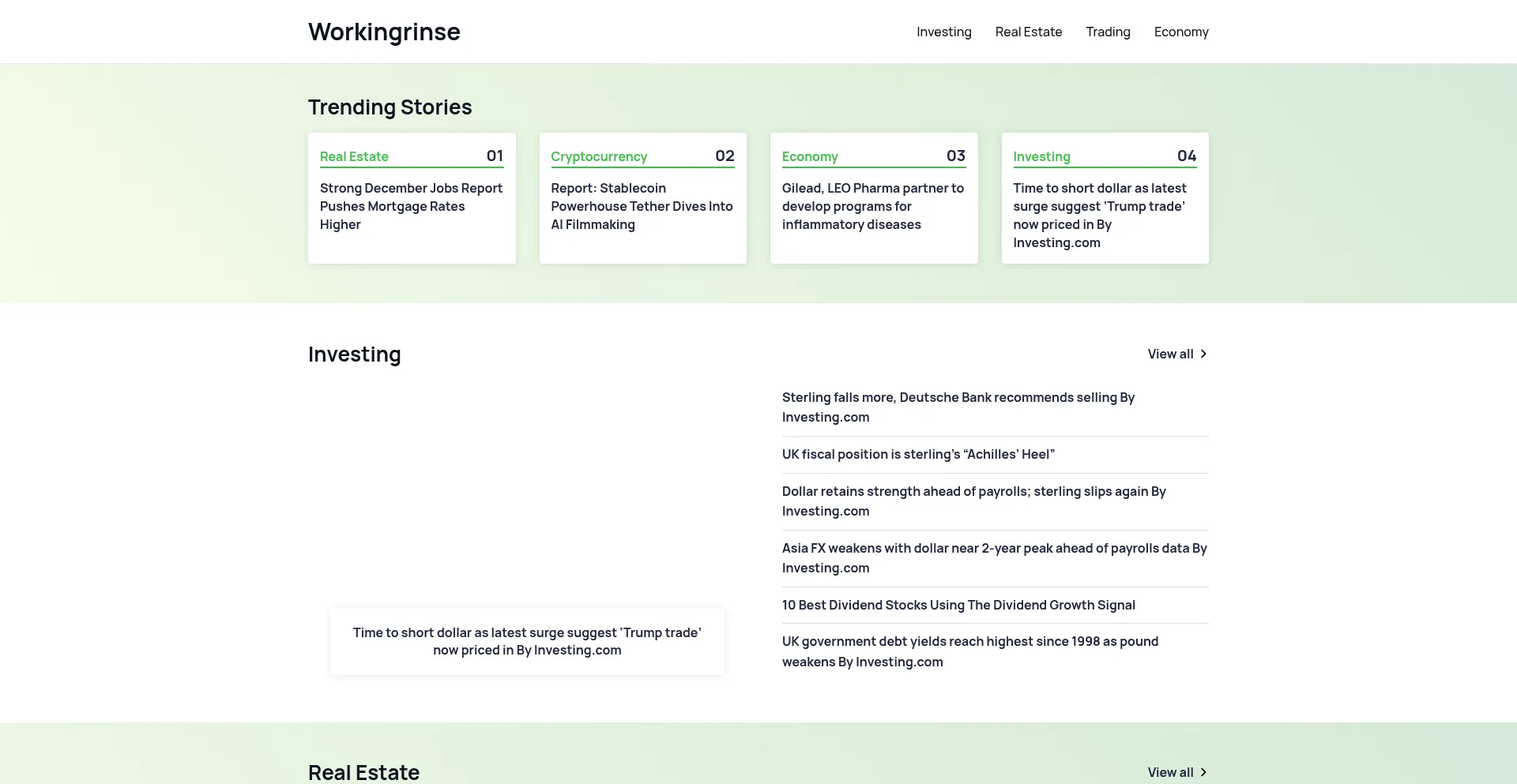 workingrinse.com 使用 Bootstrap,这是一个广泛采用的开源响应式网页开发框架。Bootstrap 通过标准化组件和样式实现移动友好界面的高效创建。