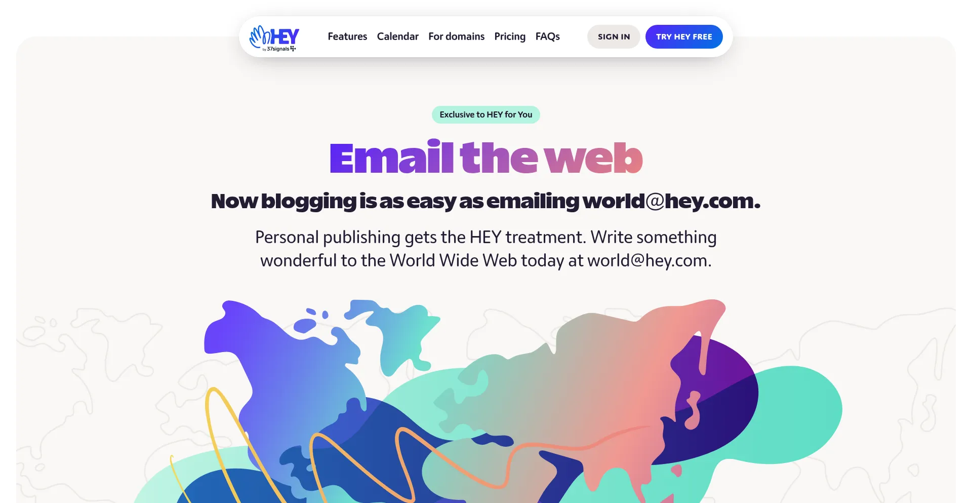 Now blogging is as easy as emailing. Personal publishing gets the HEY treatment. Write something wonderful to the World Wide Web today at [email protected].