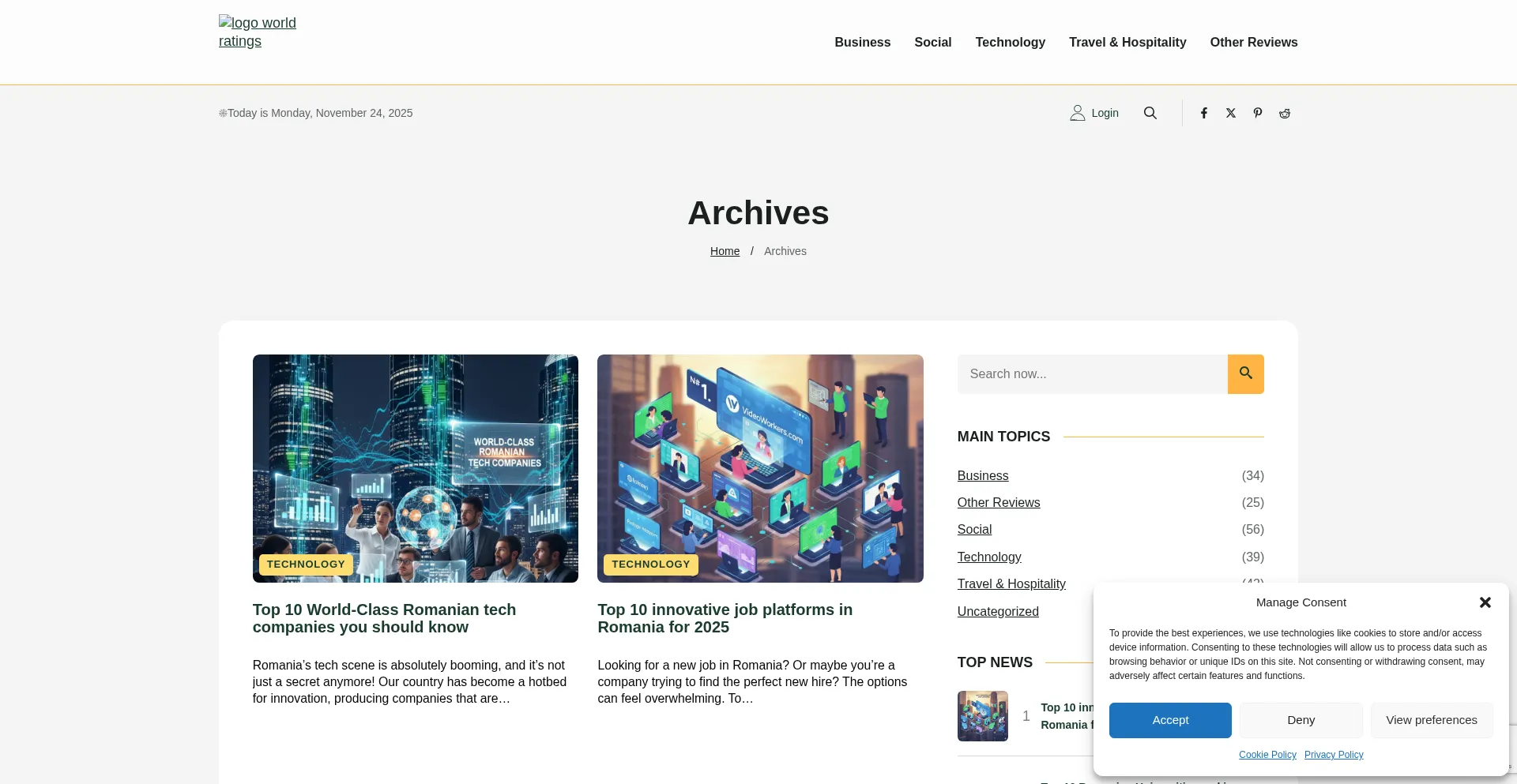 该网站实现符合GDPR或CCPA等隐私法规的cookie同意机制。这表明 world-ratings.com 遵守数据保护标准并为用户提供对个人数据收集实践的控制。
