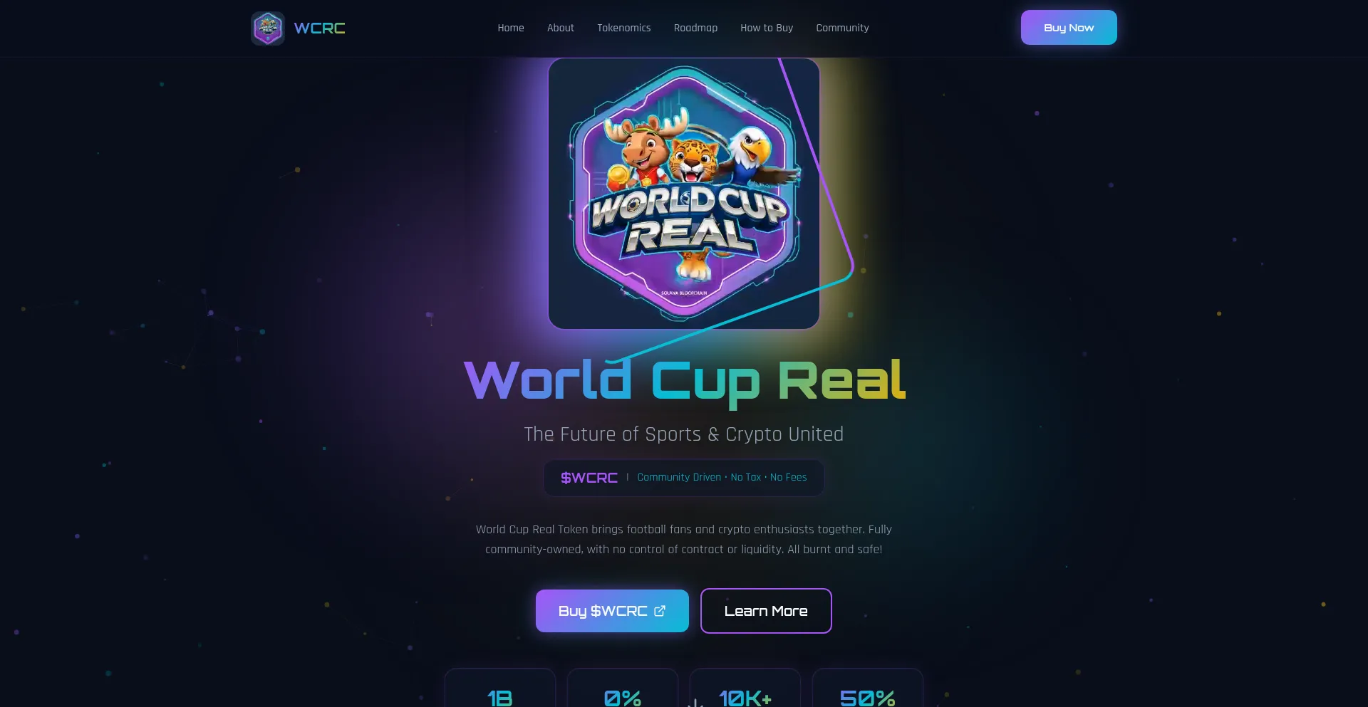 World Cup Real Token (WCRC) - Uniting football fans and crypto enthusiasts worldwide. Zero tax, community-driven, fully secure. Join the revolution!