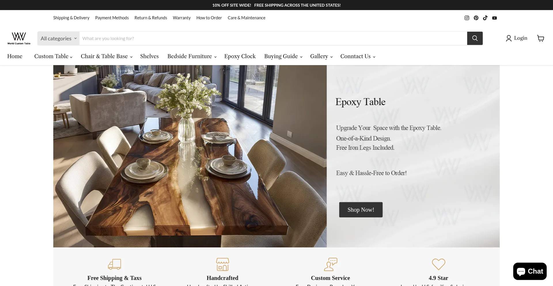 分析表明 worldcustomtable.com 作为电子商务平台运营,促进商品或服务的在线交易。该网站实现了购物车功能、支付处理系统和产品目录功能,这些是商业零售运营的典型特征。
