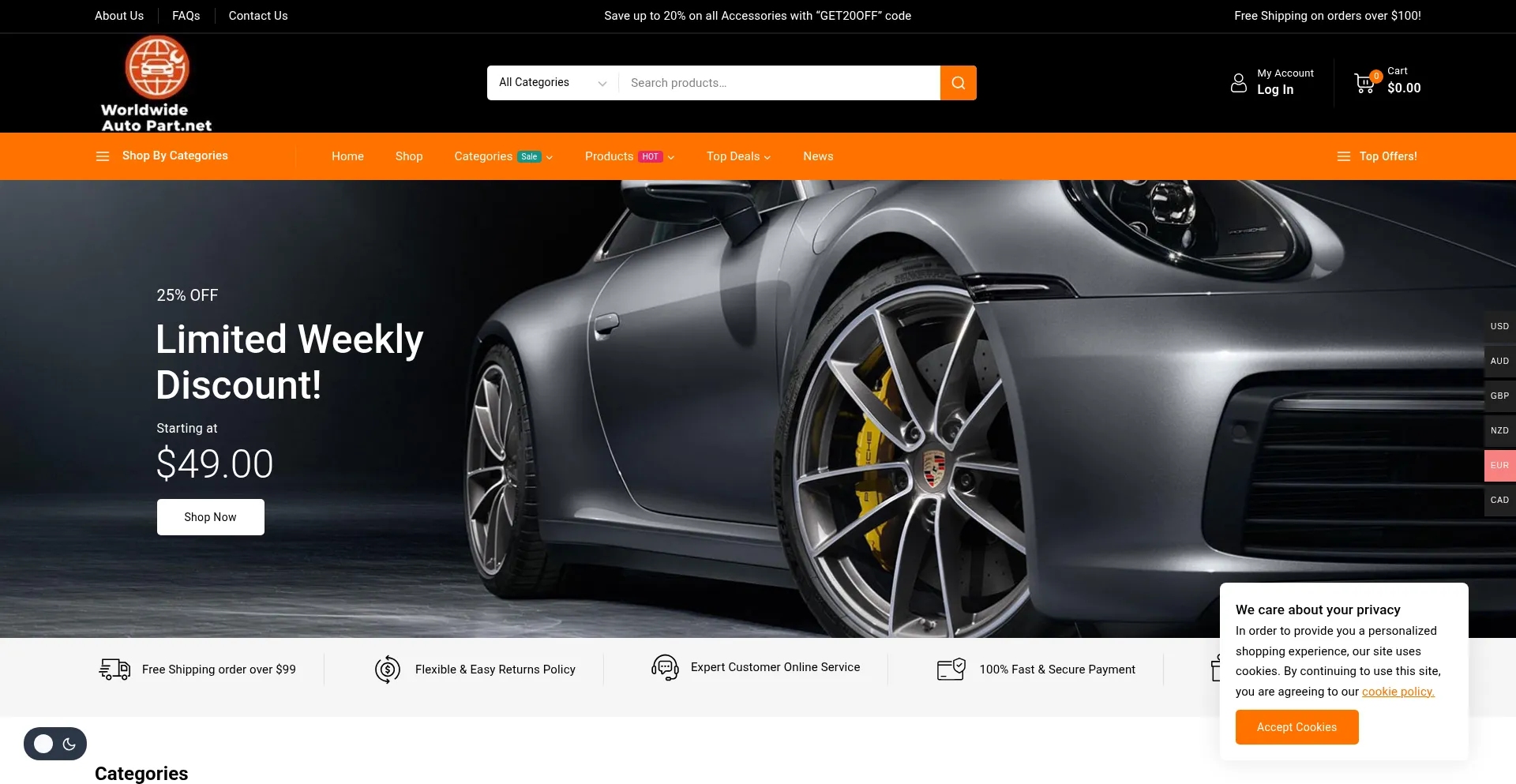 分析表明 worldwideautopart.net 作为电子商务平台运营,促进商品或服务的在线交易。该网站实现了购物车功能、支付处理系统和产品目录功能,这些是商业零售运营的典型特征。