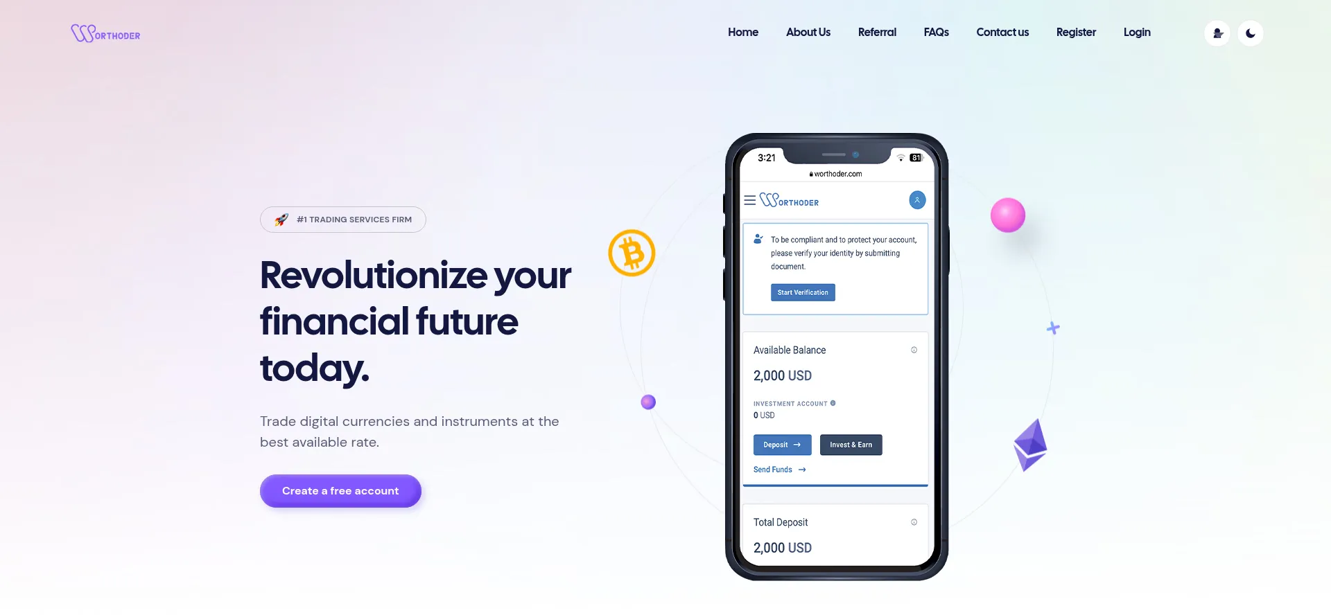 Worthoder is an investment ecosystem, which includes various tools that allow you to earn from cryptocurrency assets.