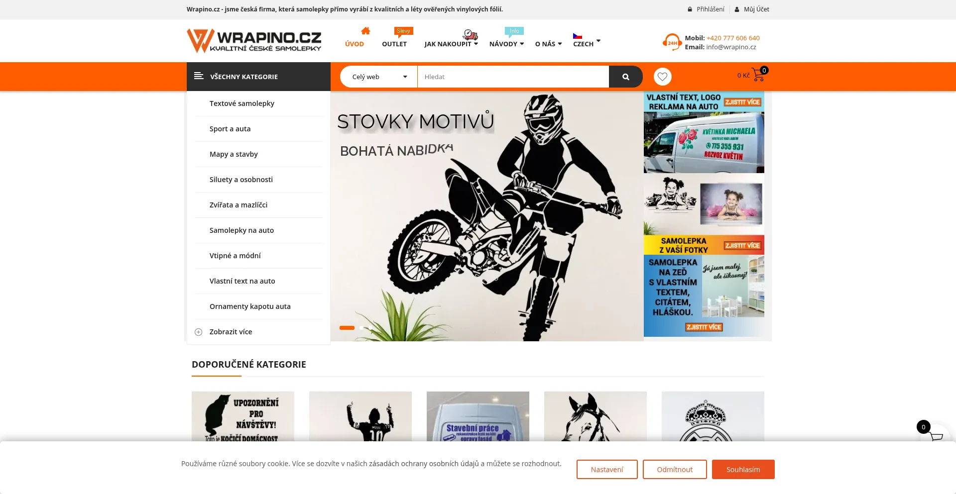 Wrapino.cz je český výrobce dekorativních samolepek a polepů na auta dle vašich požadavků. Samolepky si lepí zákazník dle návodu.