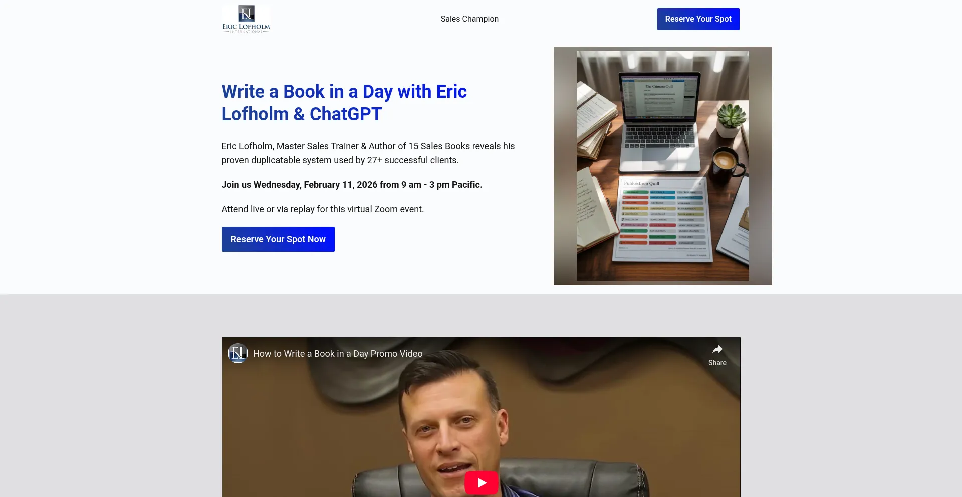 Eric Lofholm, Master Sales Trainer & Author of 15 Sales Books reveals his proven duplicatable system used by 27+ successful clients. Join us Wednesday, February 11, 2026 from ...
