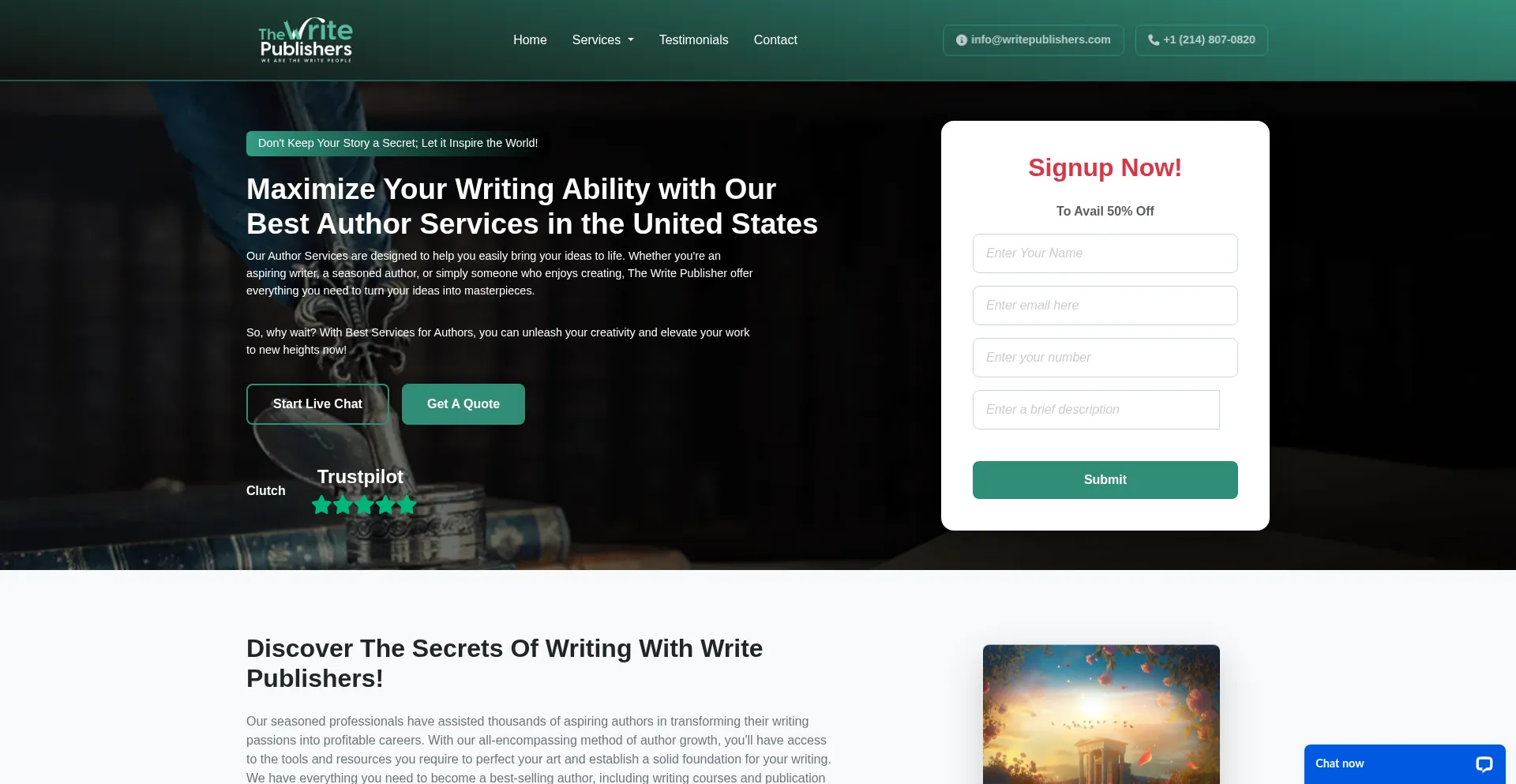 该网站实现数据收集表单,请求个人信息,包括姓名、电子邮件地址、电话号码或其他敏感详细信息。用户应验证 writepublishers.com 的合法性并在提交个人数据前查看隐私政策。