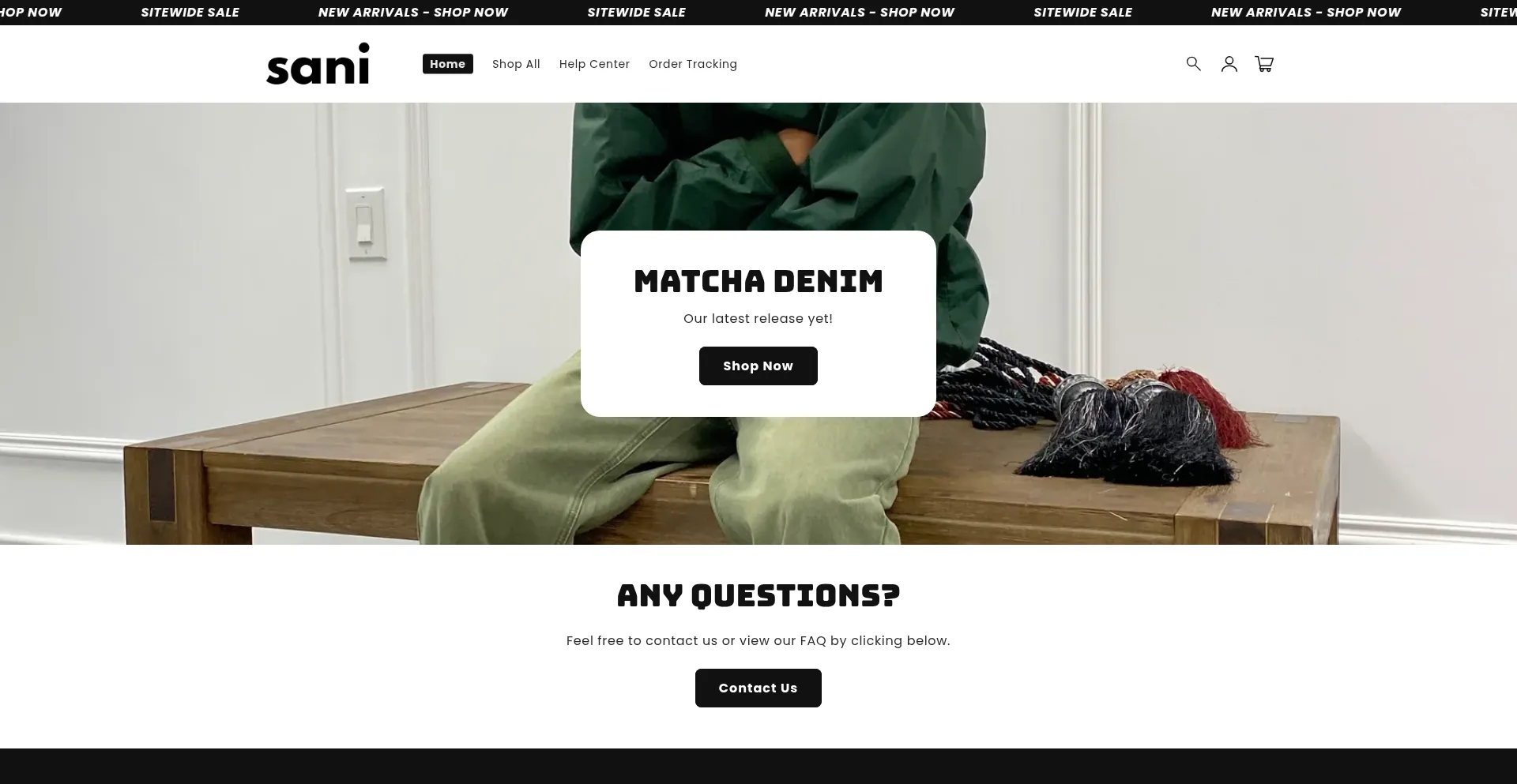Welcome to Sani. Discover shoes, hoodies, zip-ups, jeans, and more in a variety of materials and textures.