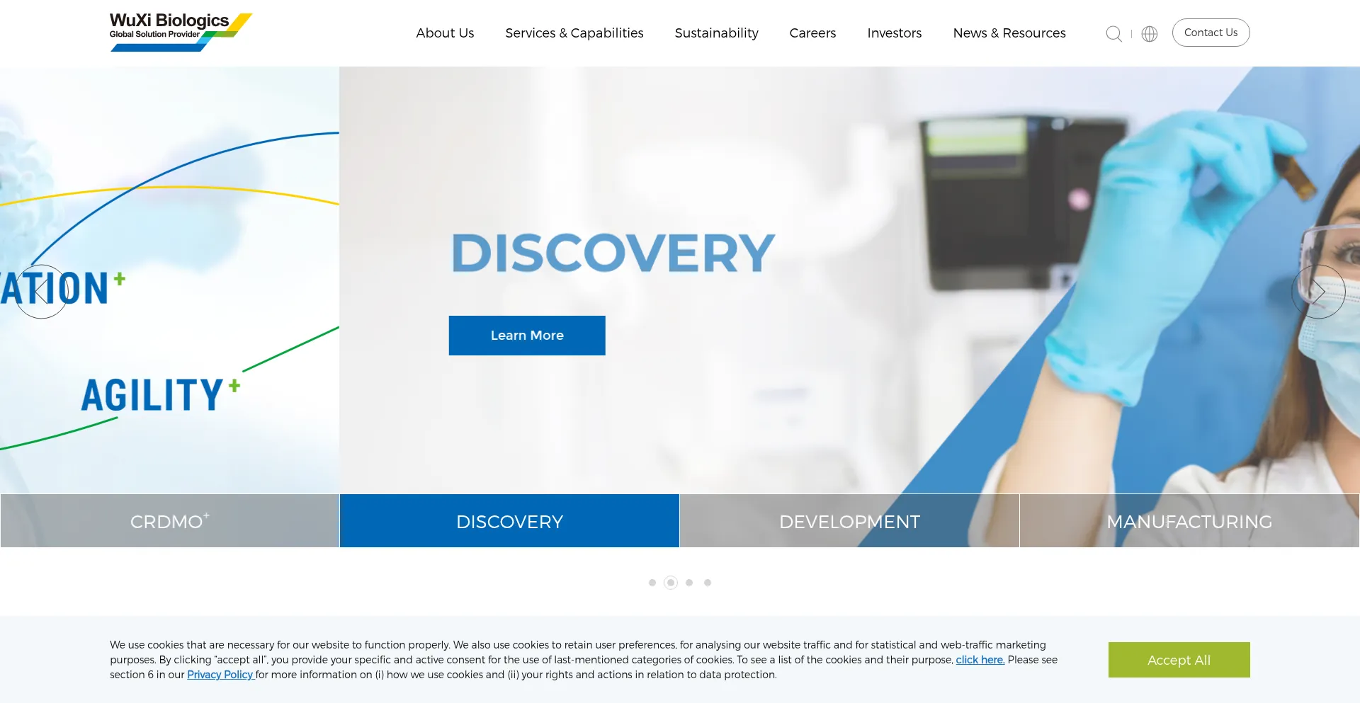 该网站实现符合GDPR或CCPA等隐私法规的cookie同意机制。这表明 wuxibiologics.com 遵守数据保护标准并为用户提供对个人数据收集实践的控制。