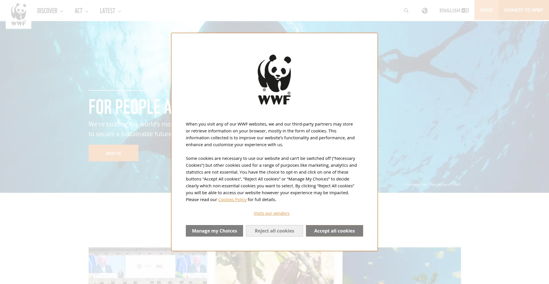 该网站实现符合GDPR或CCPA等隐私法规的cookie同意机制。这表明 wwf.panda.org 遵守数据保护标准并为用户提供对个人数据收集实践的控制。