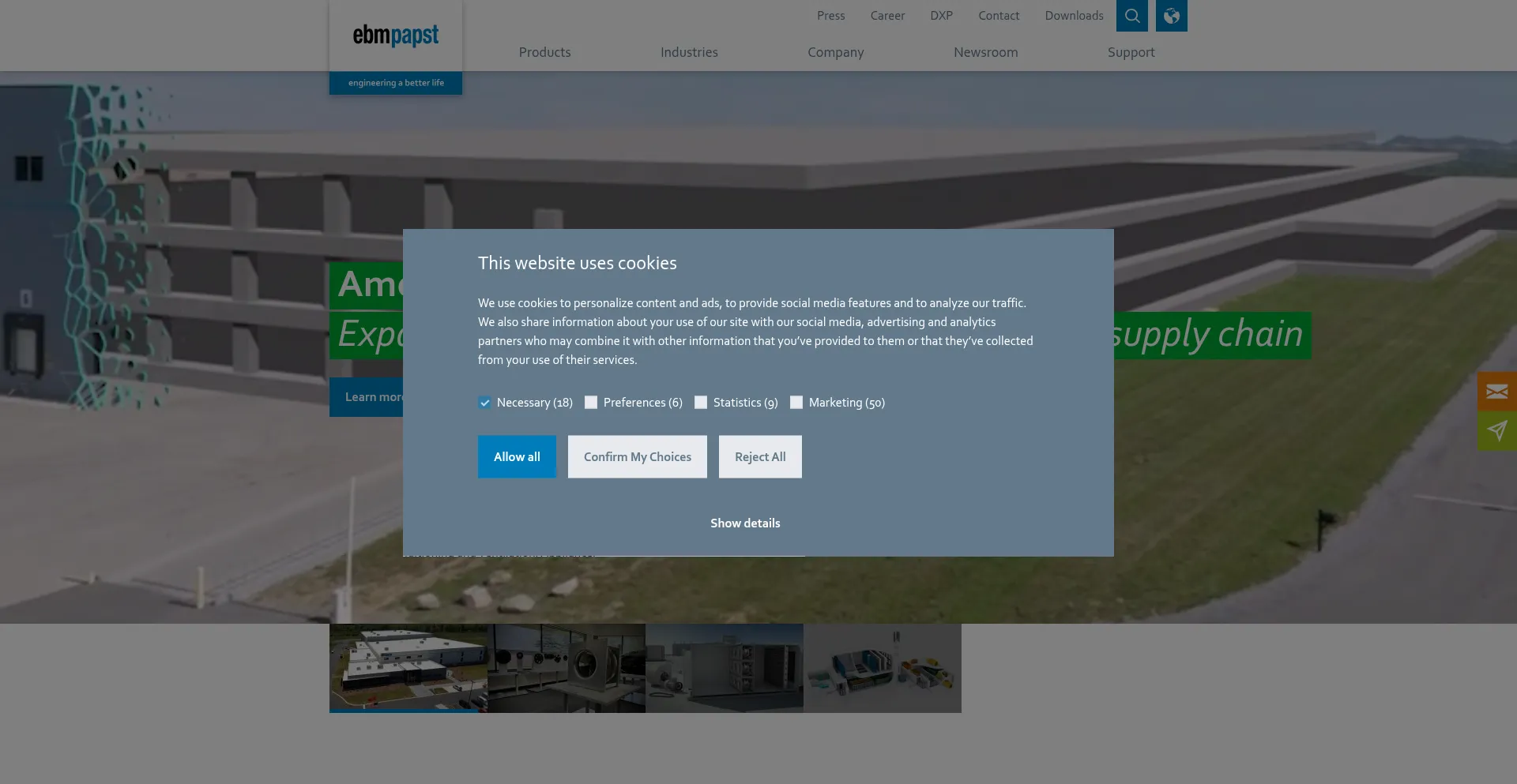 该网站实现符合GDPR或CCPA等隐私法规的cookie同意机制。这表明 www2.ebmpapst.com 遵守数据保护标准并为用户提供对个人数据收集实践的控制。