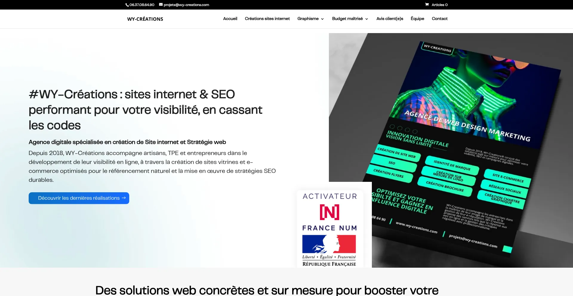 WY-Créations, agence web à Saint-Léonard-de-Noblat (Haute-Vienne) et Paris, conçoit des sites internet sur mesure, optimisés SEO, pour professionnels, artisans et entrepris...