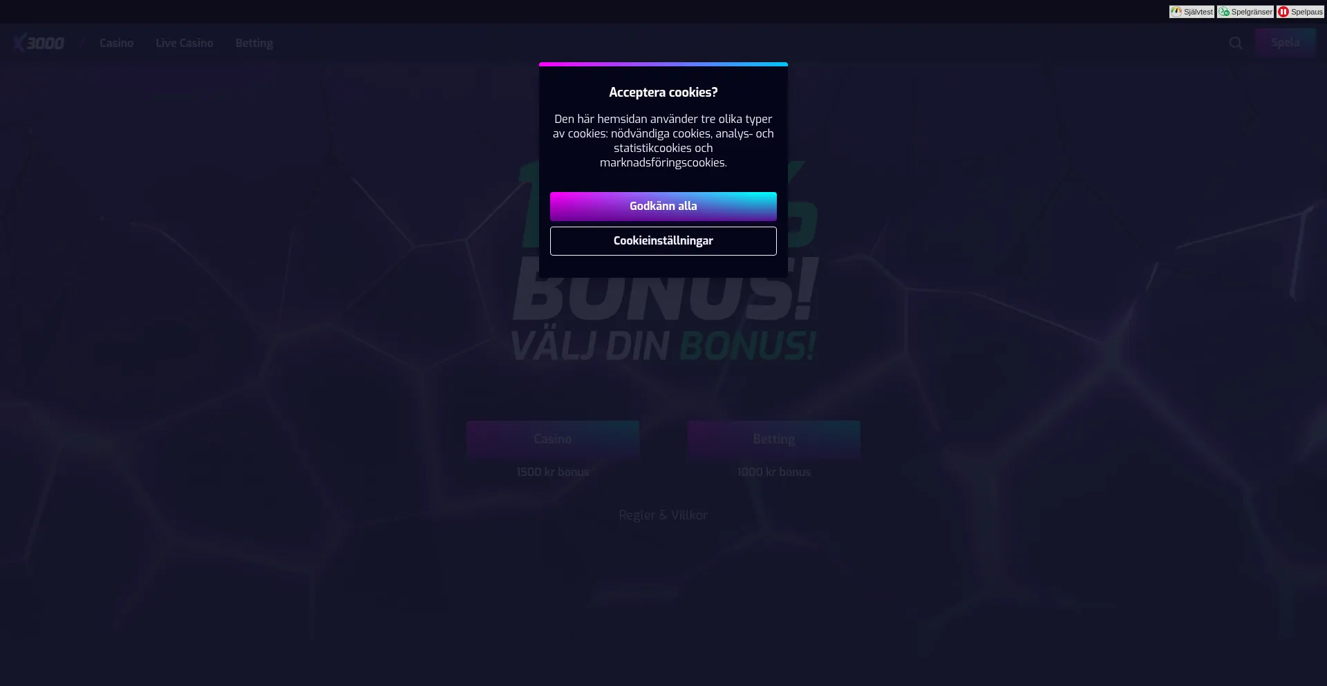 Välkommen till X3000 med alla populära spel på Casino, Betting, Live Casino och Slots. Registrera dig gratis hos oss på X3000 och få en välkomstbonus.