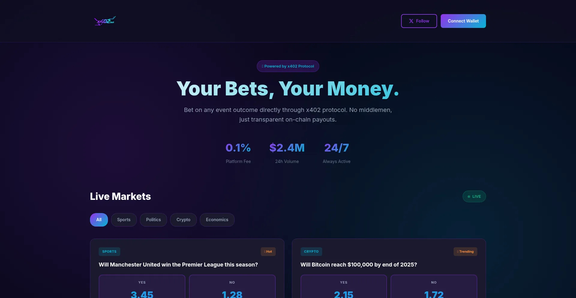 x402.bet - Your Bets, Your Money