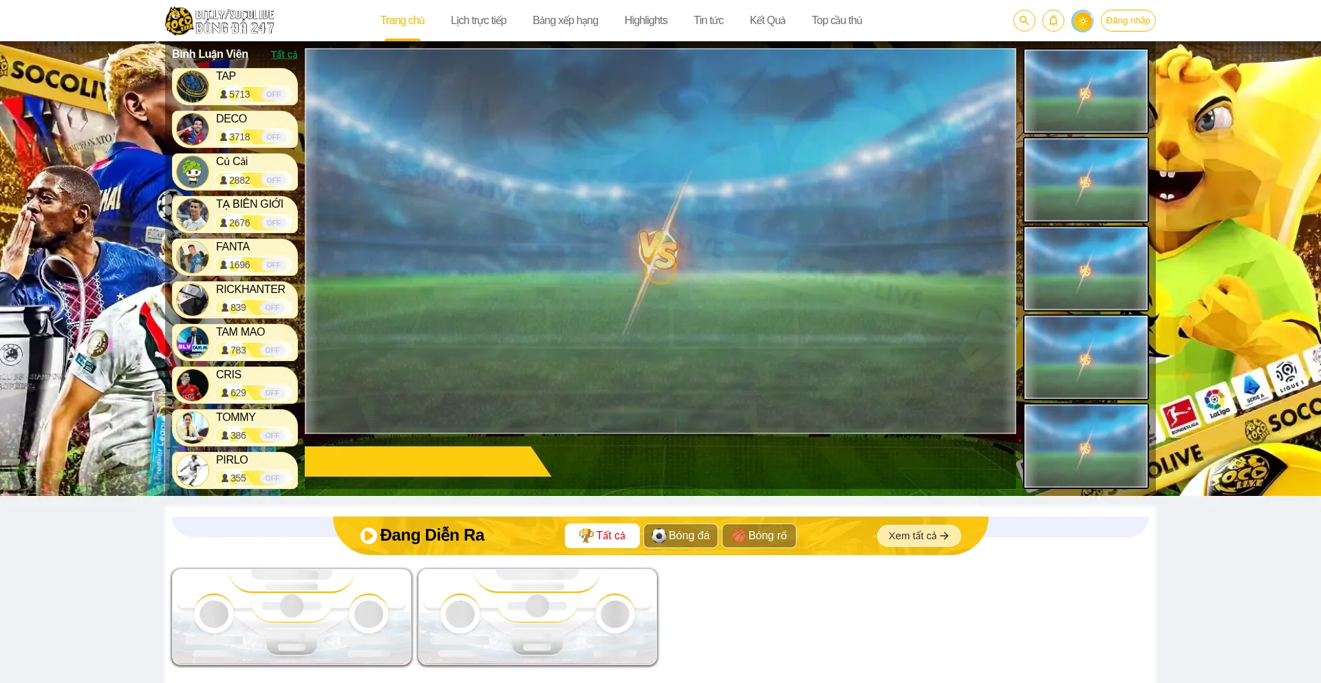 Socolive là trang website xem trực tiếp bóng đá chất lượng cao, nơi xem bóng đá trực tuyến Full HD không quảng cáo và hoàn toàn miễn phí. Socolive...