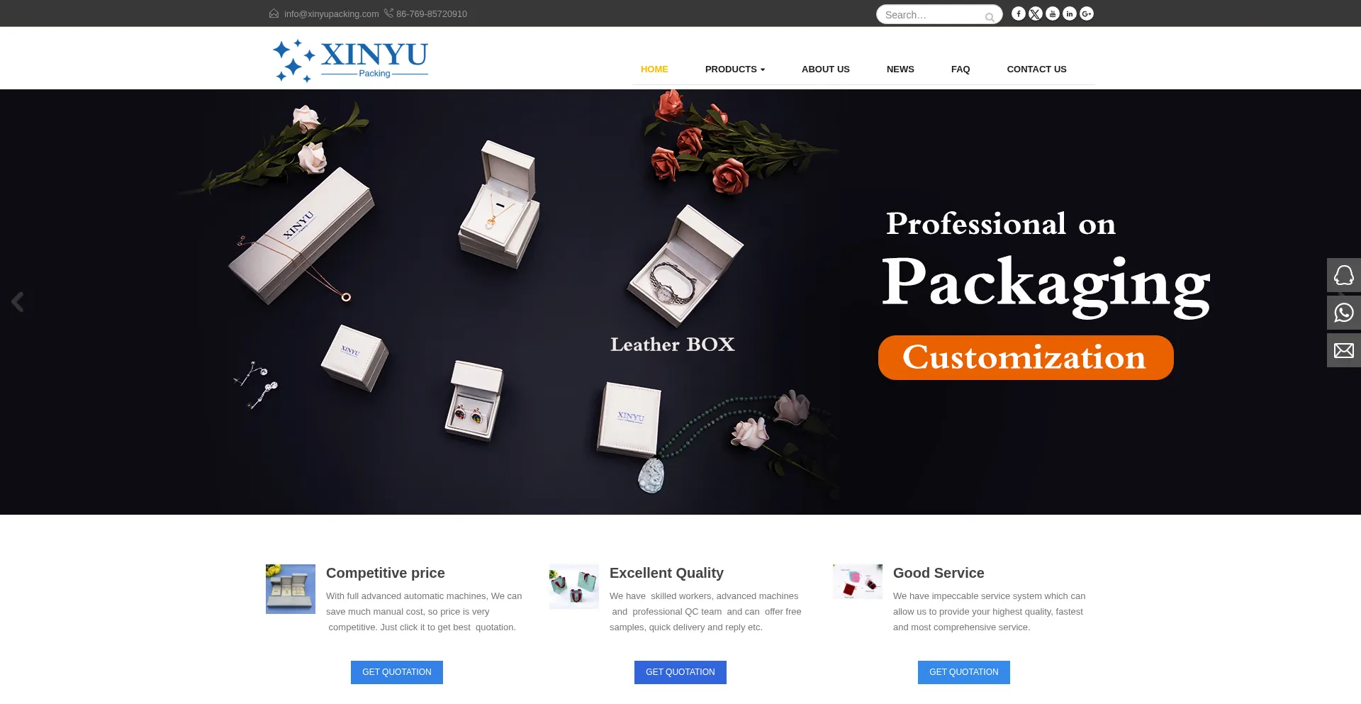 Xin Yu is professional on various packaging including jewerly box, gift box, watch box, pen box, and jewelry bags etc. Have paper box, plastic box, leather box . A good packagin...