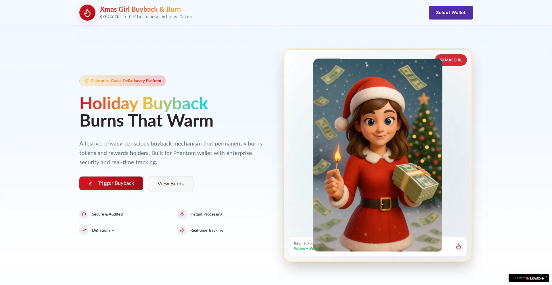 Enterprise-grade deflationary token platform. Participate in the Xmas Girl buyback program and watch your $XMASGIRL tokens burn in real-time.