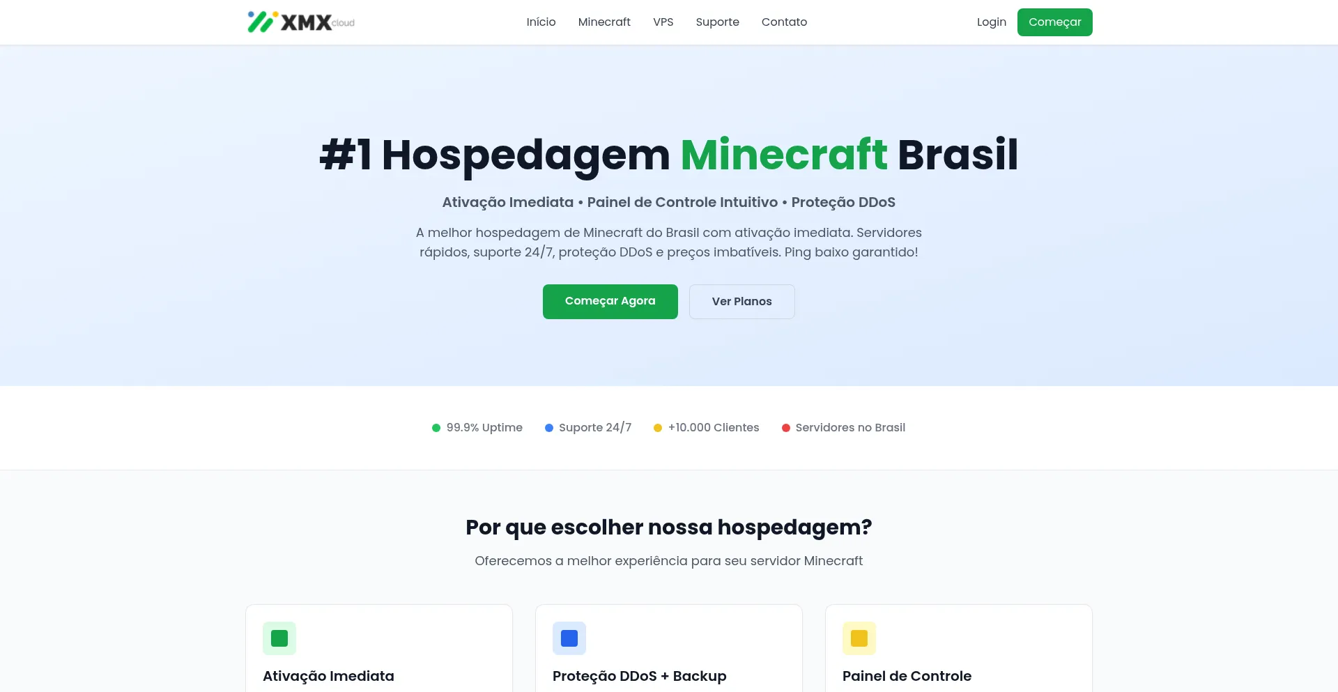 Hospedagem Minecraft Brasil #1 | Ativação Imediata | 99.9% Uptime