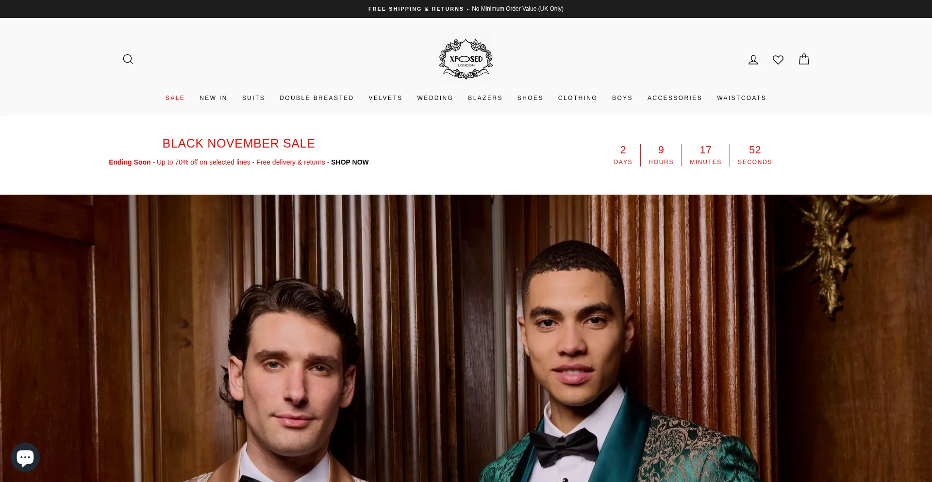 XPOSED London men's online clothing store for well dressed man. Shop from our huge collection of luxurious Wedding Suits, Velvet Jackets, Tweed Blazers, Waistcoats, and Trousers...