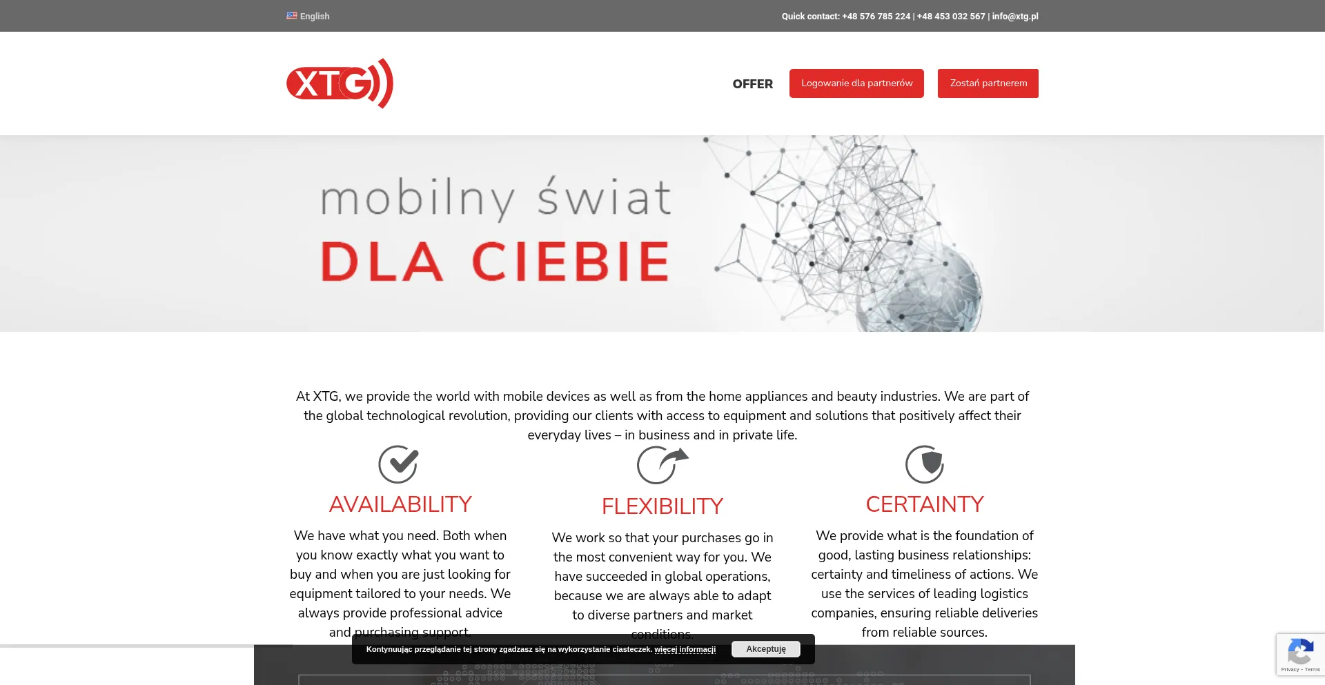 网站上存在社交媒体链接表明 xtg.pl 在社交媒体上维护官方账户,这是可信度和参与度的积极信号。