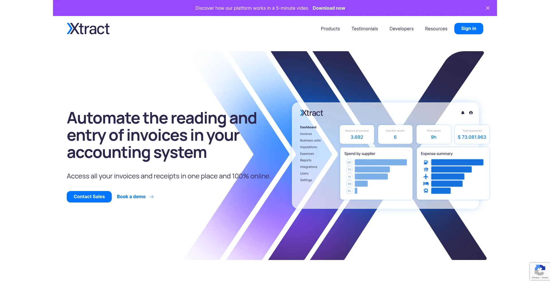 Automatically process all your purchase invoices in your company through the Xtract Platform. Speed up time and reduce costs. Learn more.
