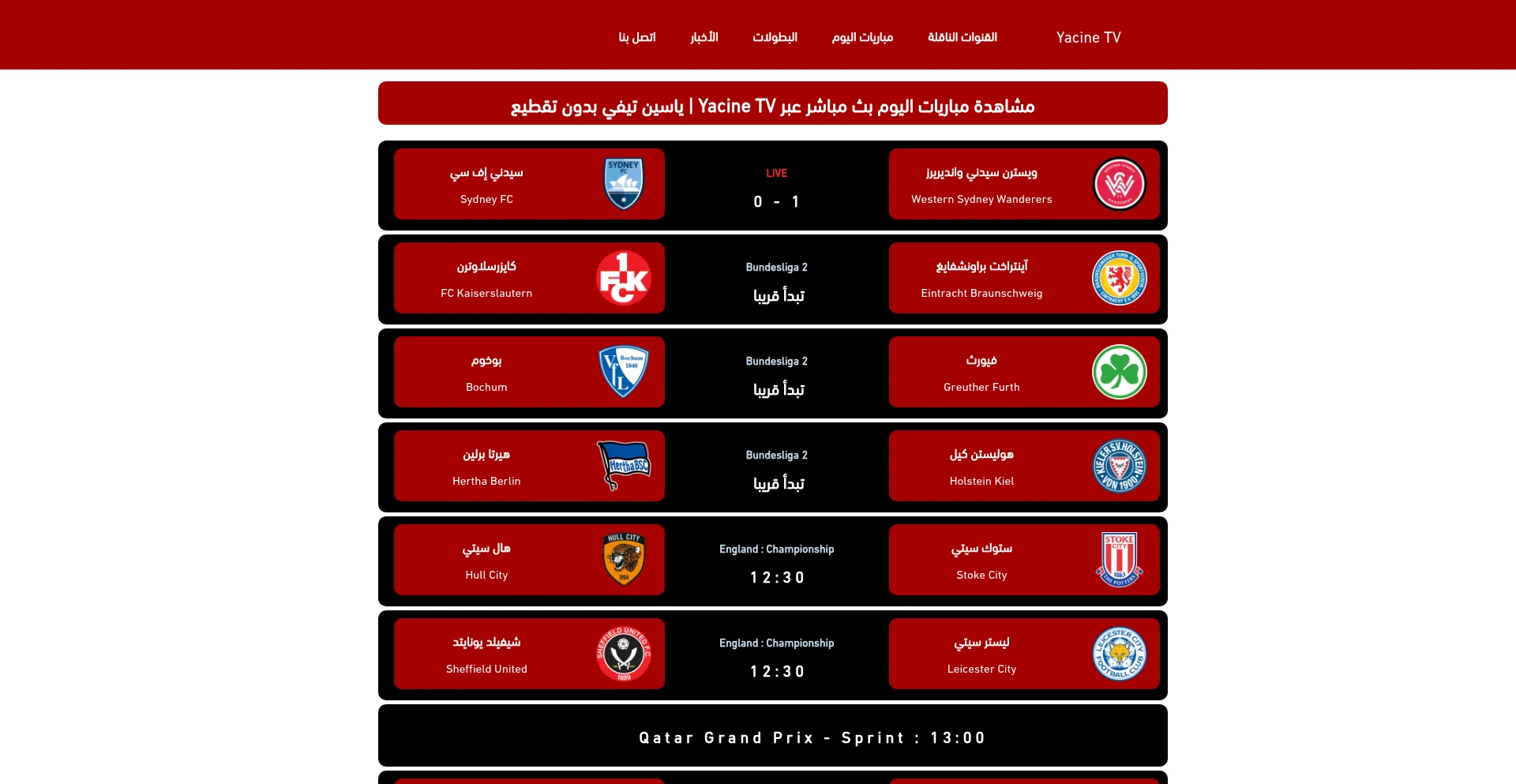 مشاهدة مباريات اليوم بث مباشر عبر Yacine TV | ياسين تيفي بدون تقطيع